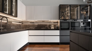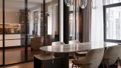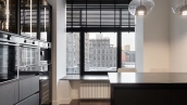 Kitchen set Nolte from Germany is equipped with built-in appliances ASKO: oven, built-in vacuum cleaner, microwave oven, coffee machine, wine fridge, Liebherr refrigerator. BoConcept dining table, Bontempi chairs, Henge stools. Lighting fixtures Aromas del Campo, Bontempi Blow, Vibia.
