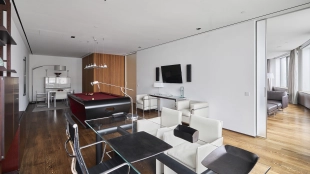 A 4-bedroom apartment with a total area of 458 m² in a premium class club house "Bryusov 19" in Tverskoy district. The apartment is located on the 7th floor, renovated in modern style, furnished with furniture and appliances. Layout: kitchen-living room, 4 bedrooms, 3 bathrooms, dressing room, hallway. Thanks to panoramic windows, the space is filled with natural light and offers views of the city.