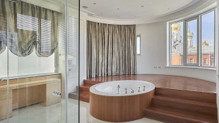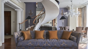 Two-level penthouse of 360 m² in a low-rise club house "Molochny, 6" on the famous "Golden Mile". The penthouse is fully furnished, equipped with premium-class appliances, "smart home" system. Thanks to the large panoramic windows the space is filled with light. Ceiling height of 3.5 meters.