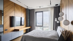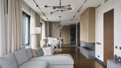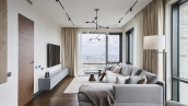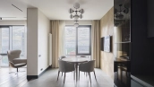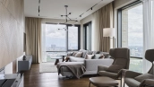 Spacious 3-bedroom apartment in the business class complex "Fili City" in the west of Moscow. The apartment with total area of 145 m² is located on the 39th floor in the building 1. The apartment is finished according to an individual design project using premium materials. The interior is complemented by a bio fireplace and a white grand piano. A variety of light sources allow you to create different lighting scenarios. Thanks to panoramic floor-to-ceiling windows, the space is filled with natural light and air.