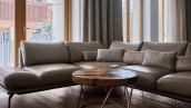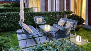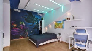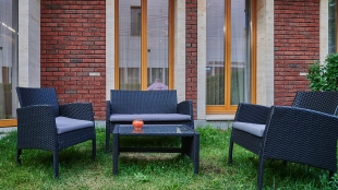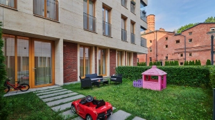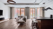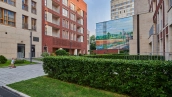 Two-level apartment of 440 sq.m. with its own patio in the premium-class complex "Literator" in Khamovniki. Premium designer finishing in modern style. High ceilings, lots of natural light. Panoramic windows in the floor overlooking the private courtyard. The apartment is equipped with furniture and modern appliances.