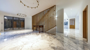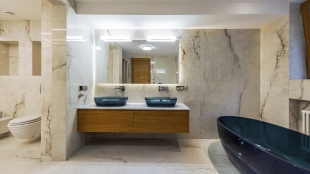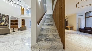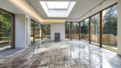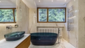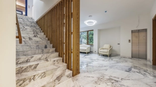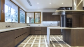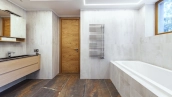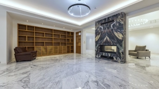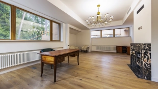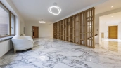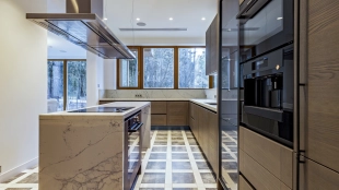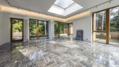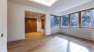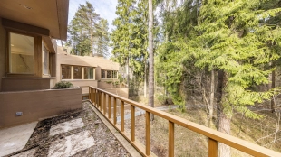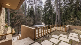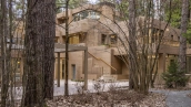 The country mansion with the area of 1250 m² is built on a spacious plot of 90 hectares with forest trees. The facade of the building with panoramic windows is made in a modern style. The turnkey residence has 6 bedrooms, living-dining room with fireplace, second light and access to the terrace, kitchen, TV room and SPA-zone with swimming pool, sauna, hammam and gym. The plot can be landscaped and equipped with a barbecue area.