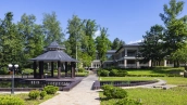 "Nikolino" is a cottage complex with a rich infrastructure. On the territory of the settlement there is a fitness center, recreational facilities, two restaurants, a gas station, tennis courts, ski tracks and a natural lake with a beach.