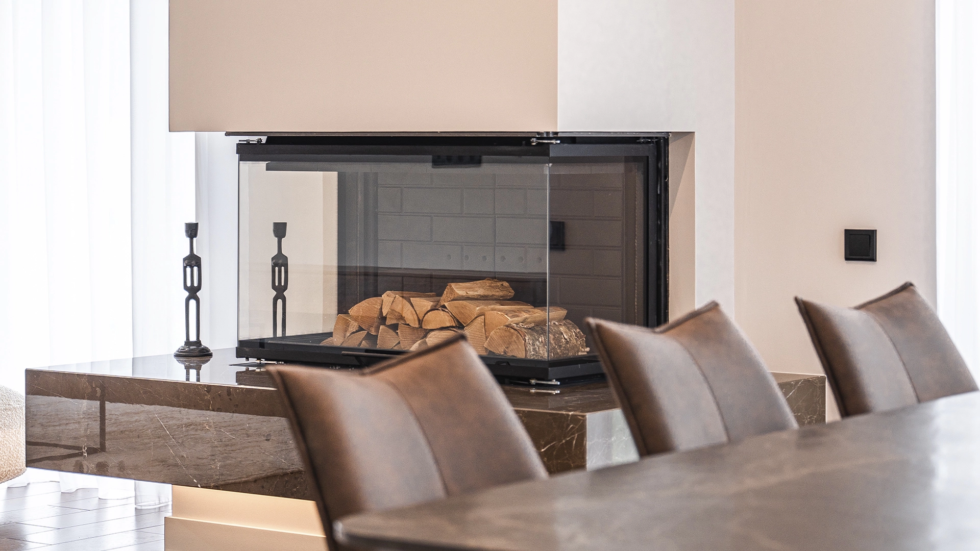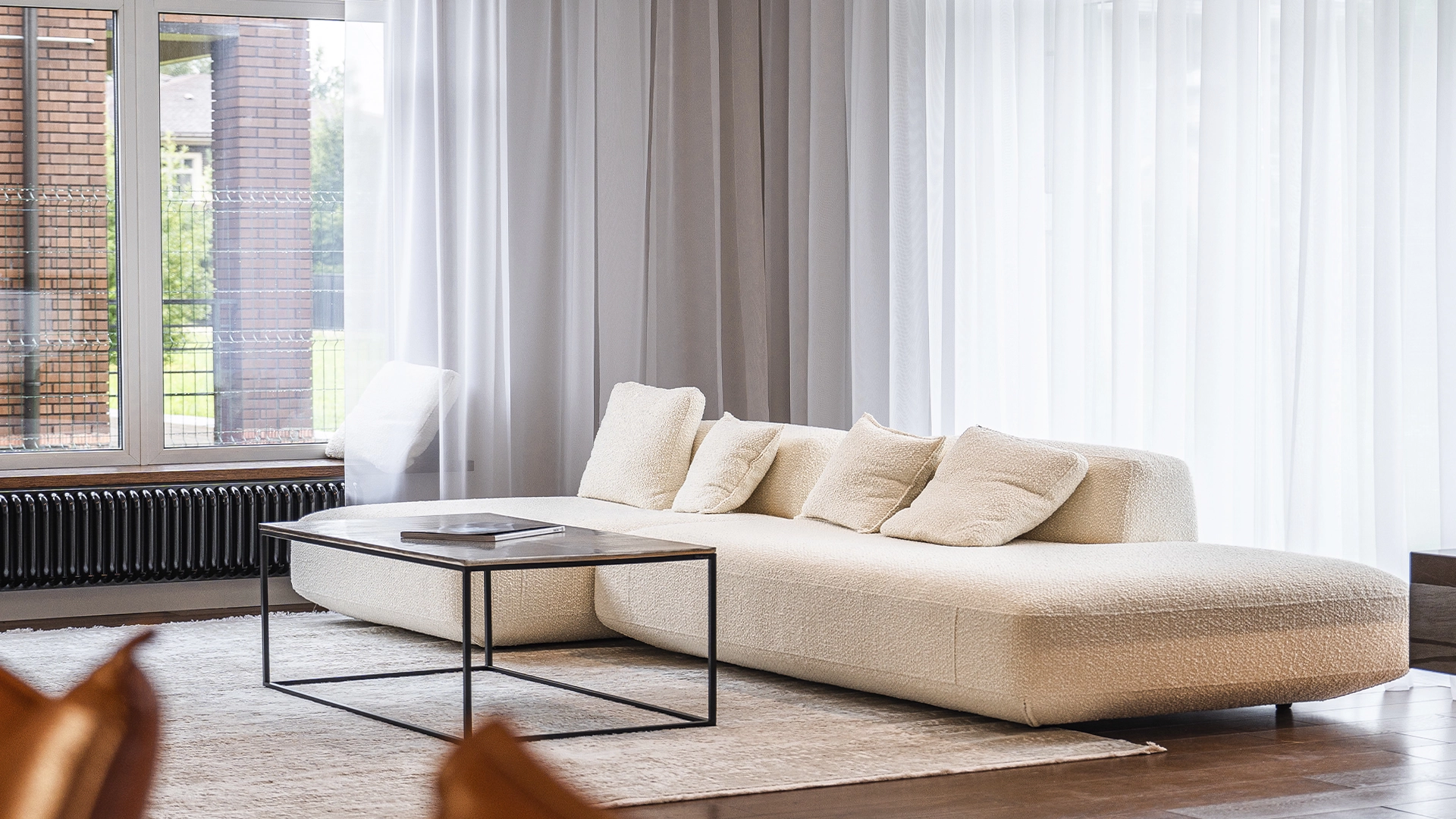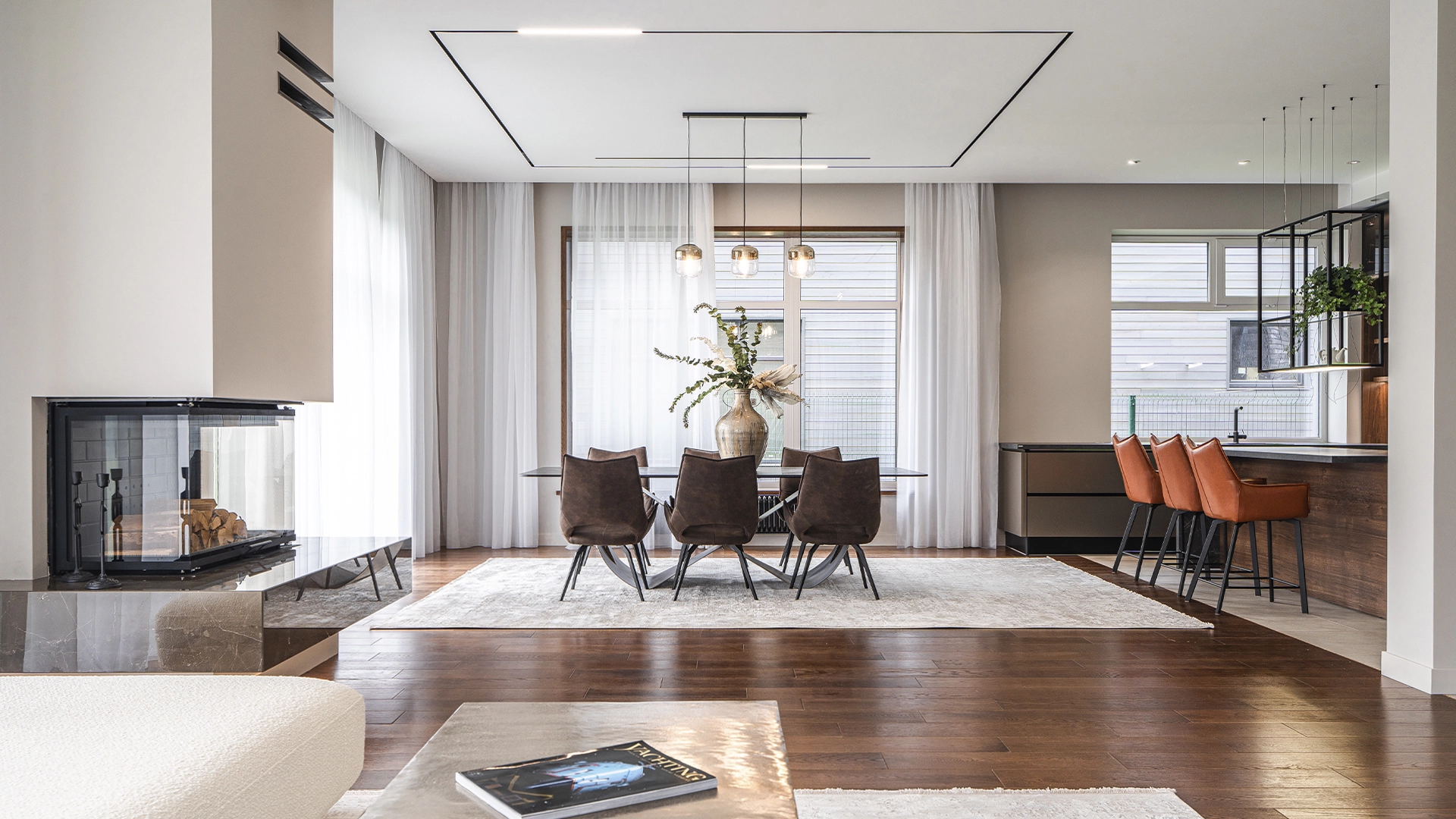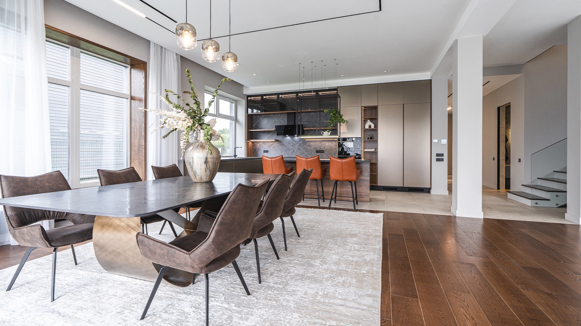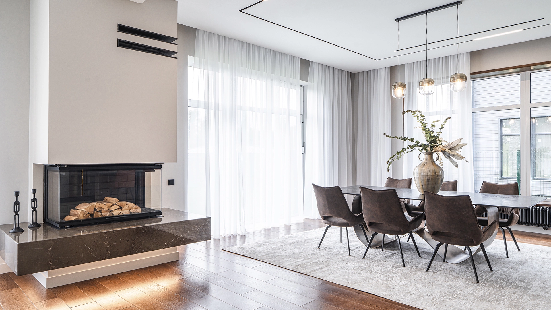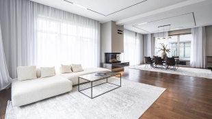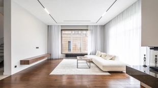 Quality and durable materials are used in construction: bricks, architectural concrete, larch, natural tiles and wooden double-glazed windows.