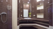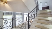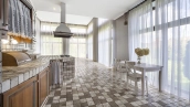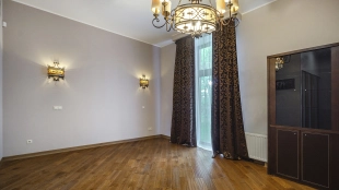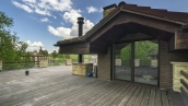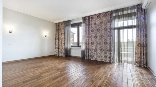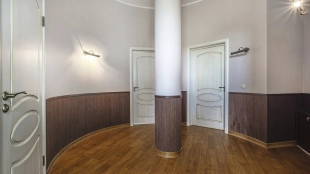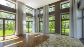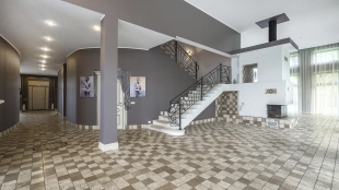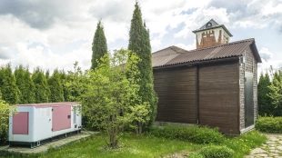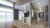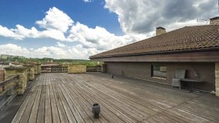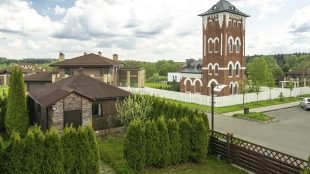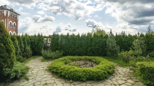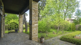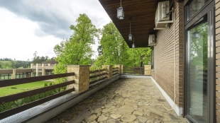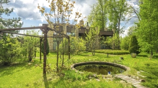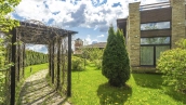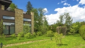 In the cottage planned a living room with a wood-burning fireplace, equipped kitchen, dining room and hall, united by a single, light-filled space, 4 bedrooms, office and a large veranda, where you can arrange a recreation area. Also in the contour of the mansion is provided a garage for 2 cars, and next to the main building built a house for staff or security. The landscaped plot has a lawn, paved paths, street lighting, shrubs, lime trees and fruit trees.