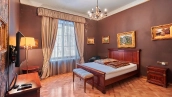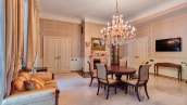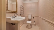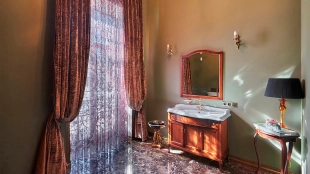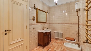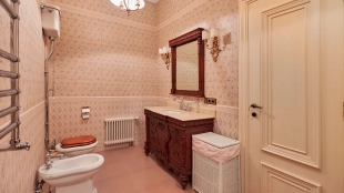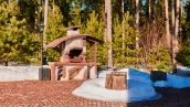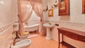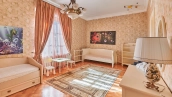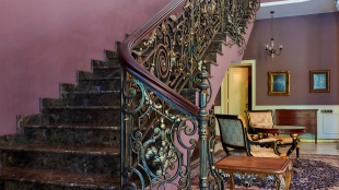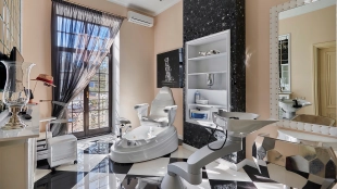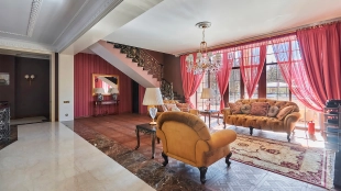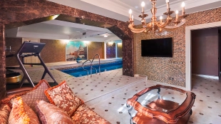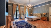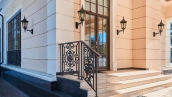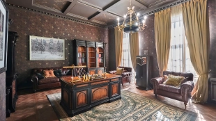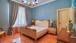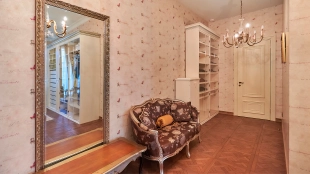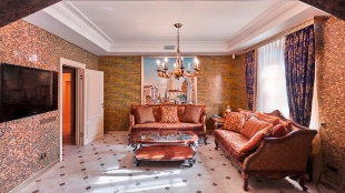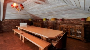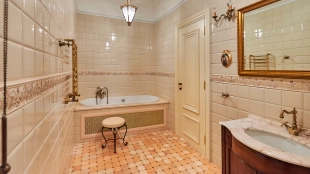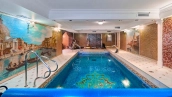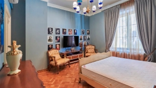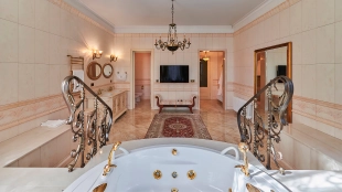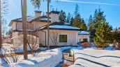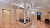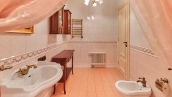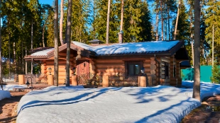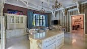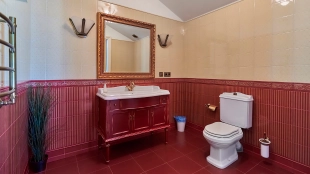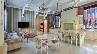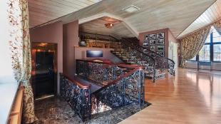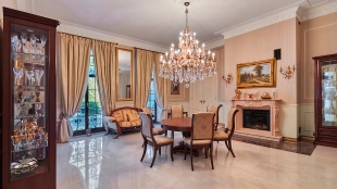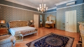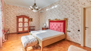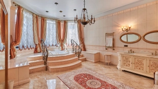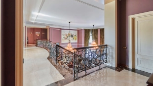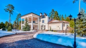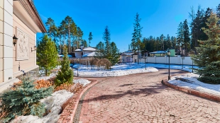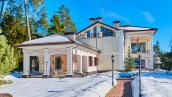 The spacious 1450 m² mansion is located on a 2 hectare plot with landscaped grounds. The bright facade is faced with plaster, decorated with rustovka, platbands, columns, carved capitals and panels. The interior is kept in the classical style, the texture of stone and wood, wrought iron elements, ornaments are used in the decoration. The house is equipped with furniture, household appliances and sanitary ware of world brands. Inside there are 5 bedrooms, living room with fireplace, kitchen and dining room, professional kitchen with elevator for serving dishes, beauty salon, office. The basement is equipped with a swimming pool, sauna, hammam, billiard room and home theater. On the plot are built a house for barbecue, wood-fired sauna, staff house, guest house with car wash and garage for 4 cars, tennis court.
