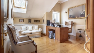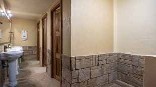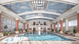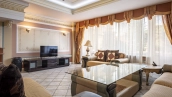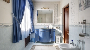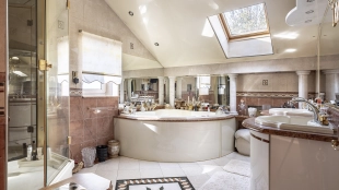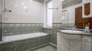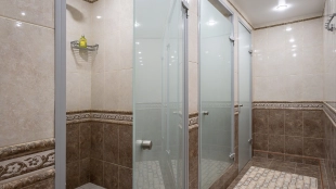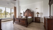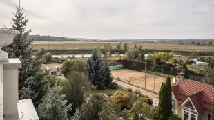 A 2,700 m² sports complex has been built next to the main building. Its layout includes a gym, tennis court, billiard room, 6 bedrooms and SPA-complex with a 20x5 meters swimming pool, sauna and hammam. There is also a banquet hall, a guest house, a staff house of 200 m², a garage for 10 cars, a soccer field, an outdoor tennis court and a children's playground with a trampoline. In the pond gazebo with barbecue area will be pleasant to spend an evening with family and friends. The plot is landscaped with lawn, trees and shrubs, paved paths and street lighting.