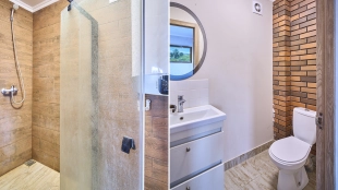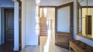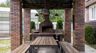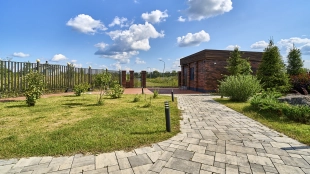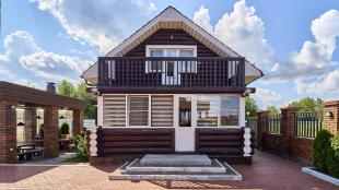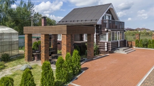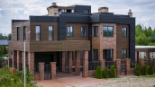 The country cottage with an area of 700 m² is located on a 35 hectare plot. The modern facade with spectacular lighting and large windows is faced with wood textured panels and clinker bricks in a harmonious color scheme. The interiors are made in light colors, complemented with stylish furniture, built-in appliances and modern sanitary ware, creating an atmosphere of coziness and comfort.