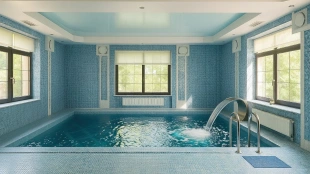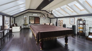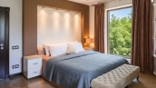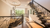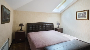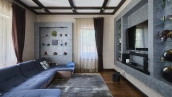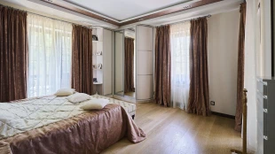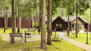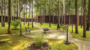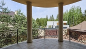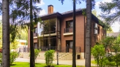 The layout includes 7 bedrooms, a kitchen-dining room and a spacious living room with a double-sided fireplace, second light and panoramic windows filling the space with sunlight. In addition, there is a SPA-complex with a swimming pool, sauna and recreation room, where you can relax with billiards or watching movies. The infrastructure is complemented by a barbecue house, a three-car garage with a 70 m² staff apartment and a greenhouse.