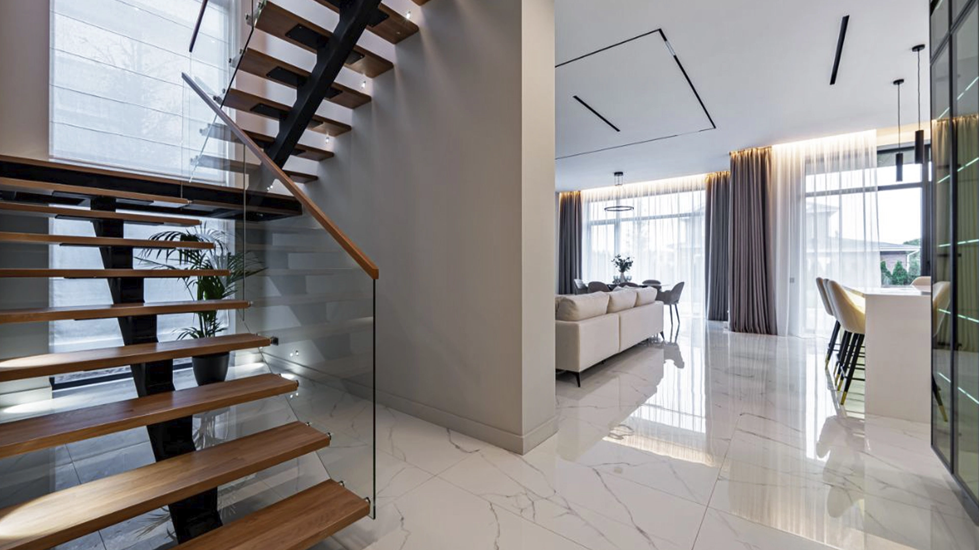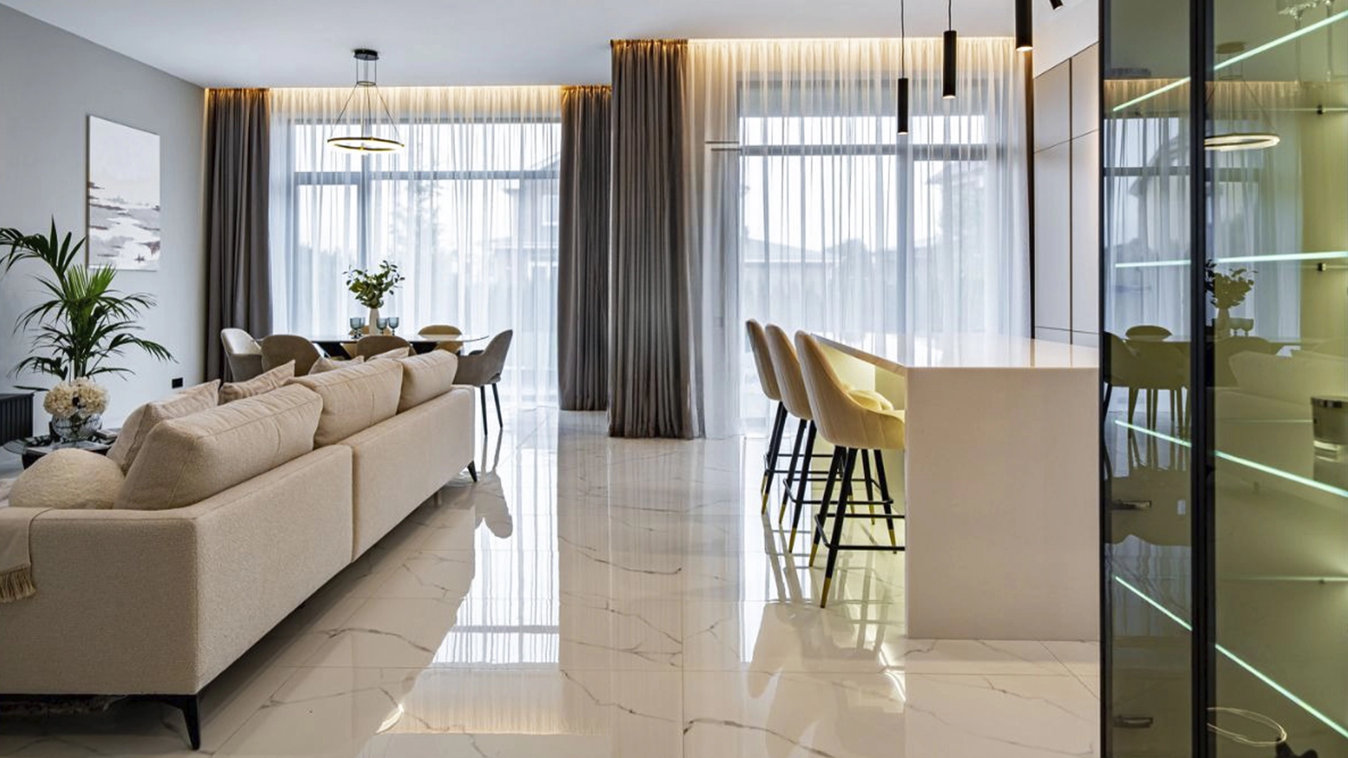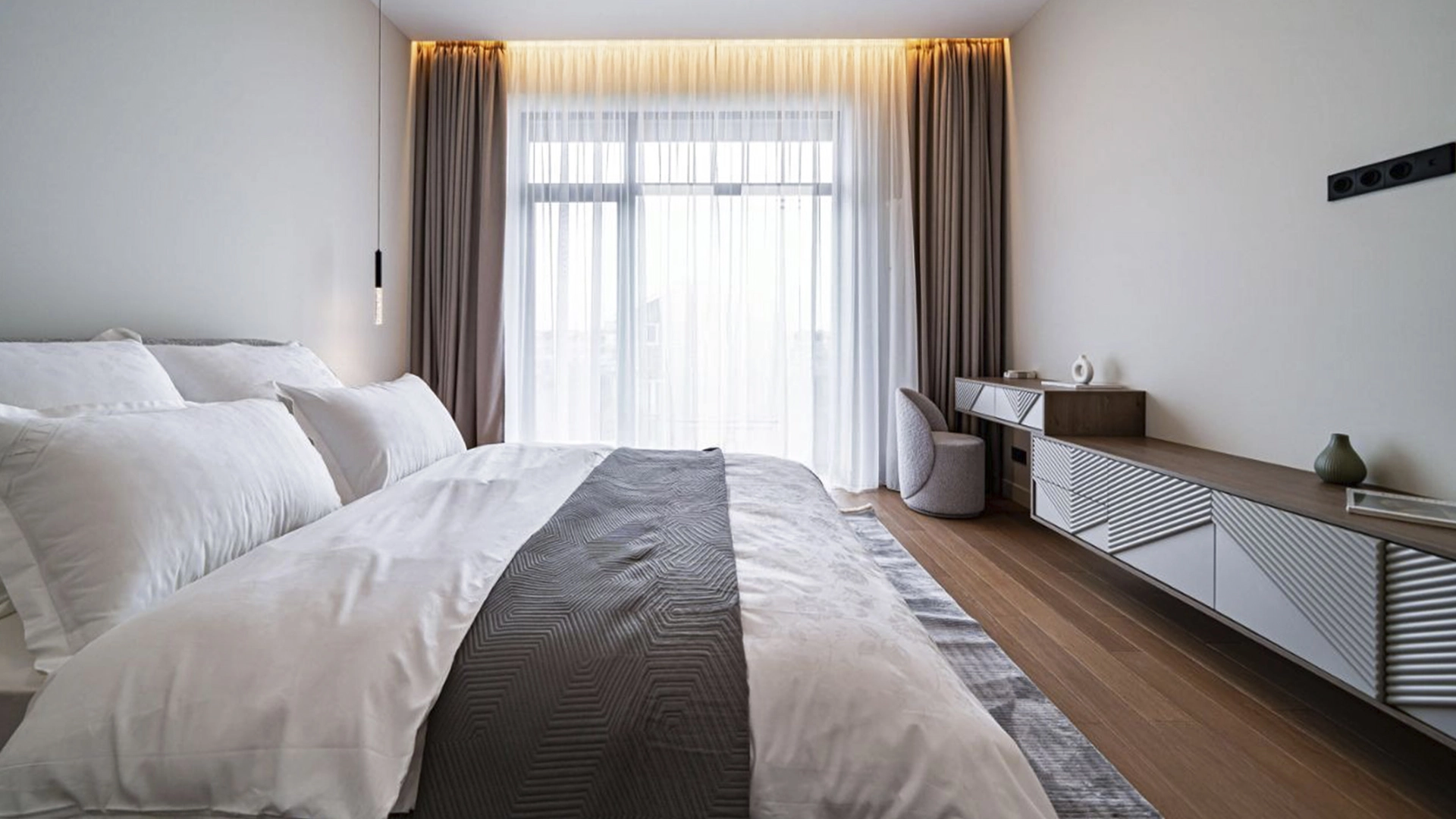 The minimalist, light-colored interiors are finished with high quality materials and are ready for living - complete with sleek designer furniture, built-in Bosch appliances and elegant lighting fixtures.