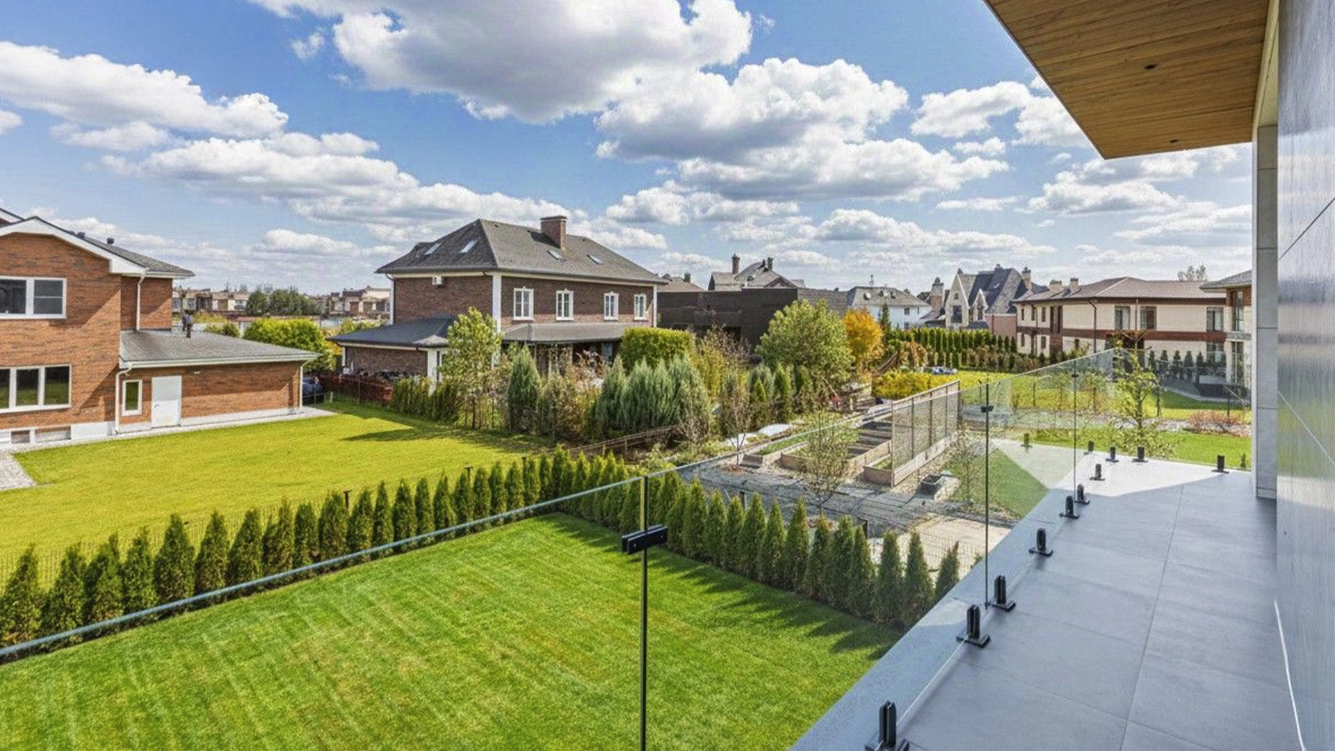 The layout includes a spacious living room-kitchen-dining room with a convenient island, four cozy bedrooms with their own dressing rooms, a private study, a sauna, a laundry room and a terrace for evening tea parties. There is a carport for comfortable car parking. The plot is well-maintained - there is a tiled paved yard area, a neat lawn, and slender thuja trees planted along the perimeter, creating an atmosphere of privacy.