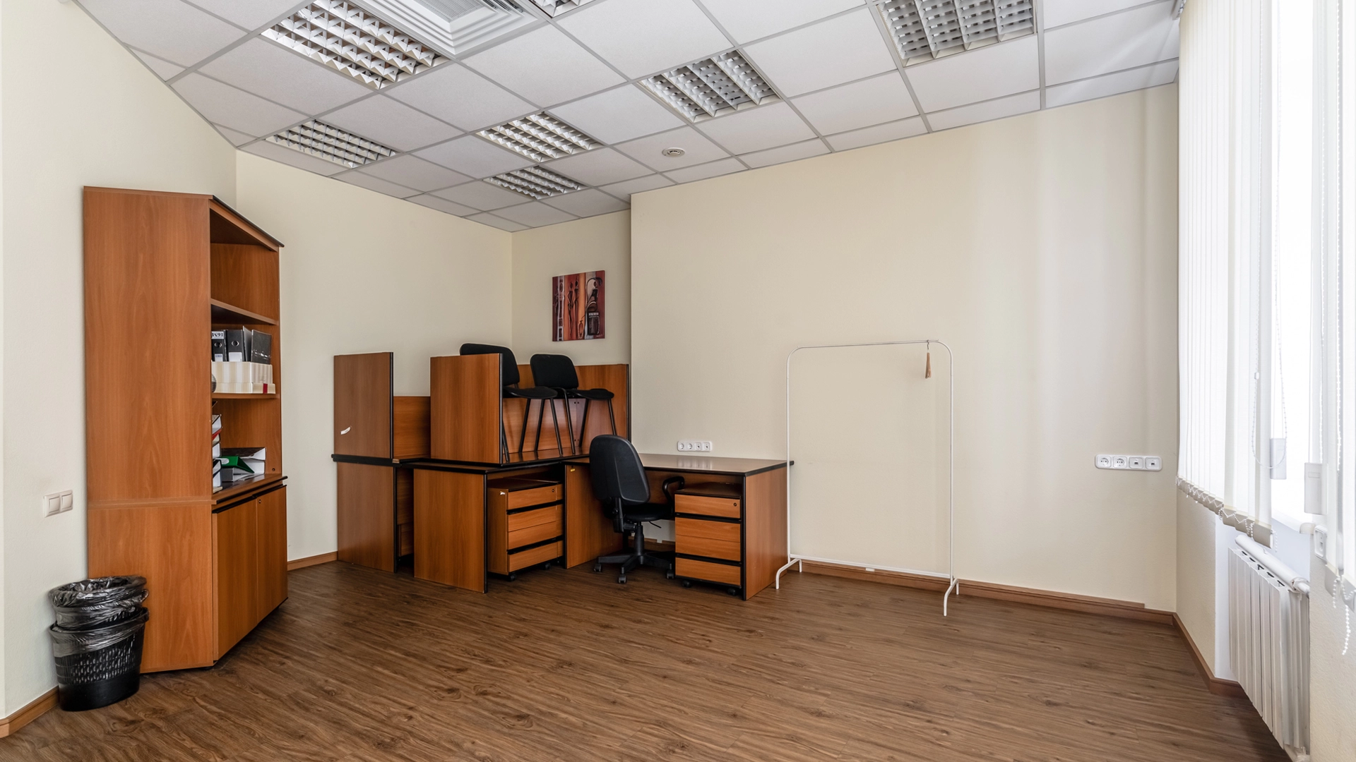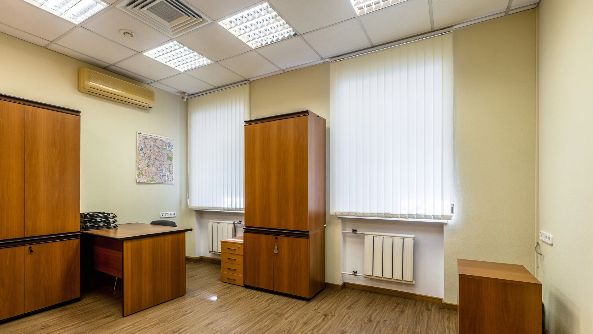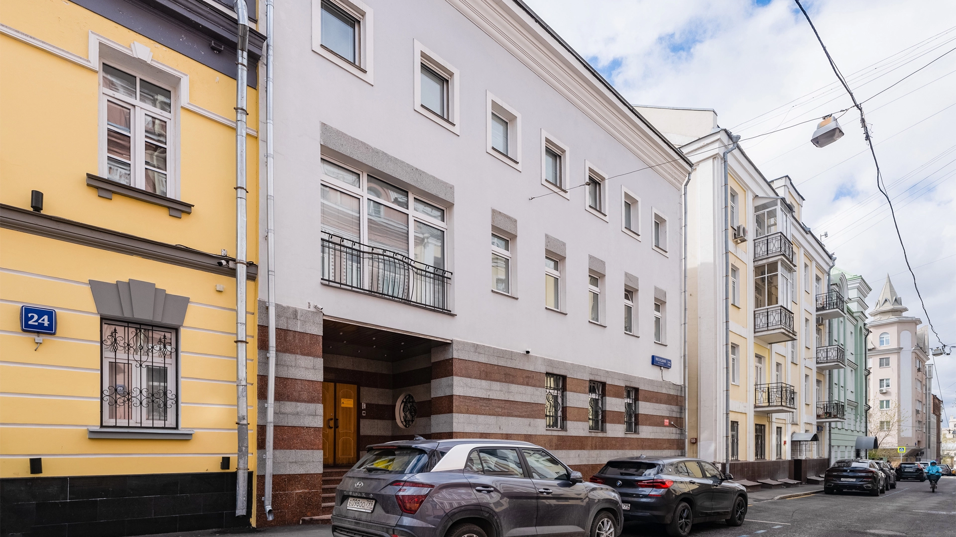 A three-story mansion in the Last Lane in Meshchansky district. The building with brick walls and reinforced concrete ceilings was built in 2000. The facade is made in light gray color, the 1st floor is faced with decorative stone tiles. Two entrance groups are located on the sides of the street and courtyard. Inside the office layout and quality office repair, ceiling height of 3 meters. Central communications are carried out, supply and exhaust ventilation and split-systems are installed. On the fenced territory there is a parking lot for 4 cars. The mansion is suitable for a representative office, company office and medical center.