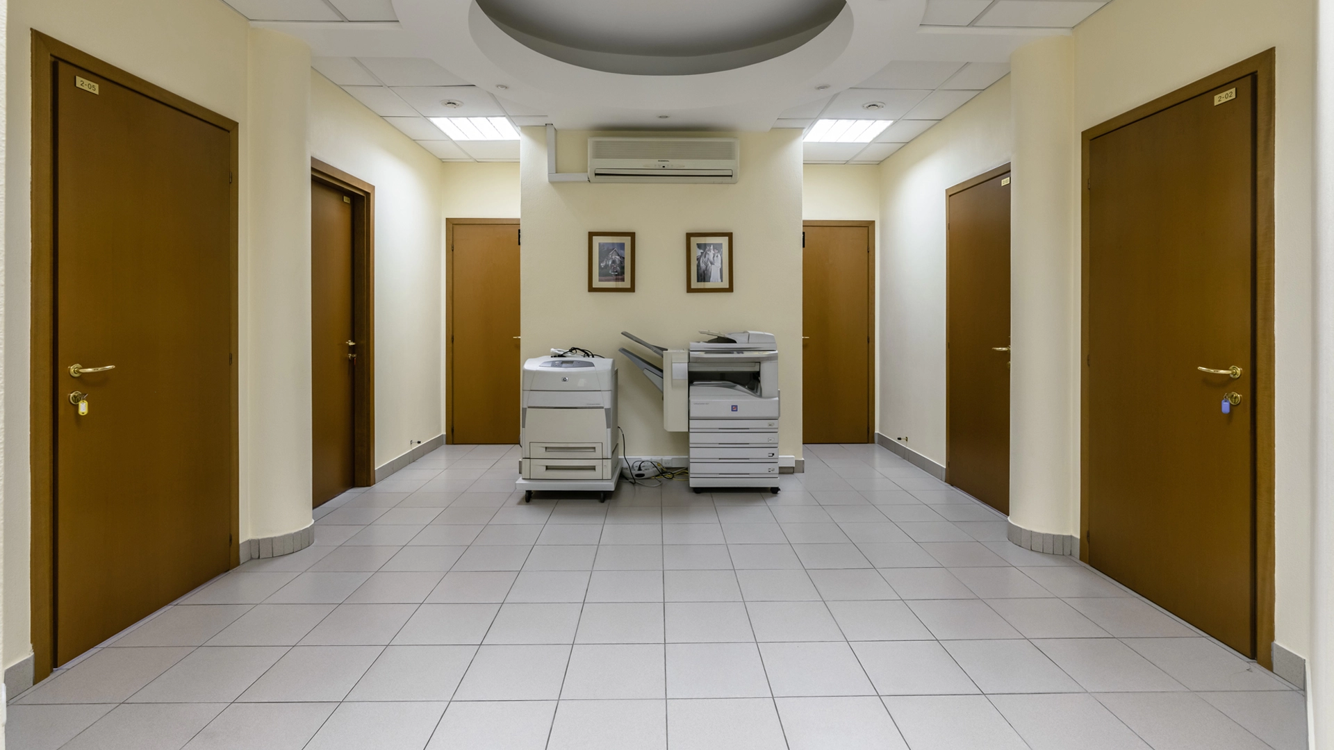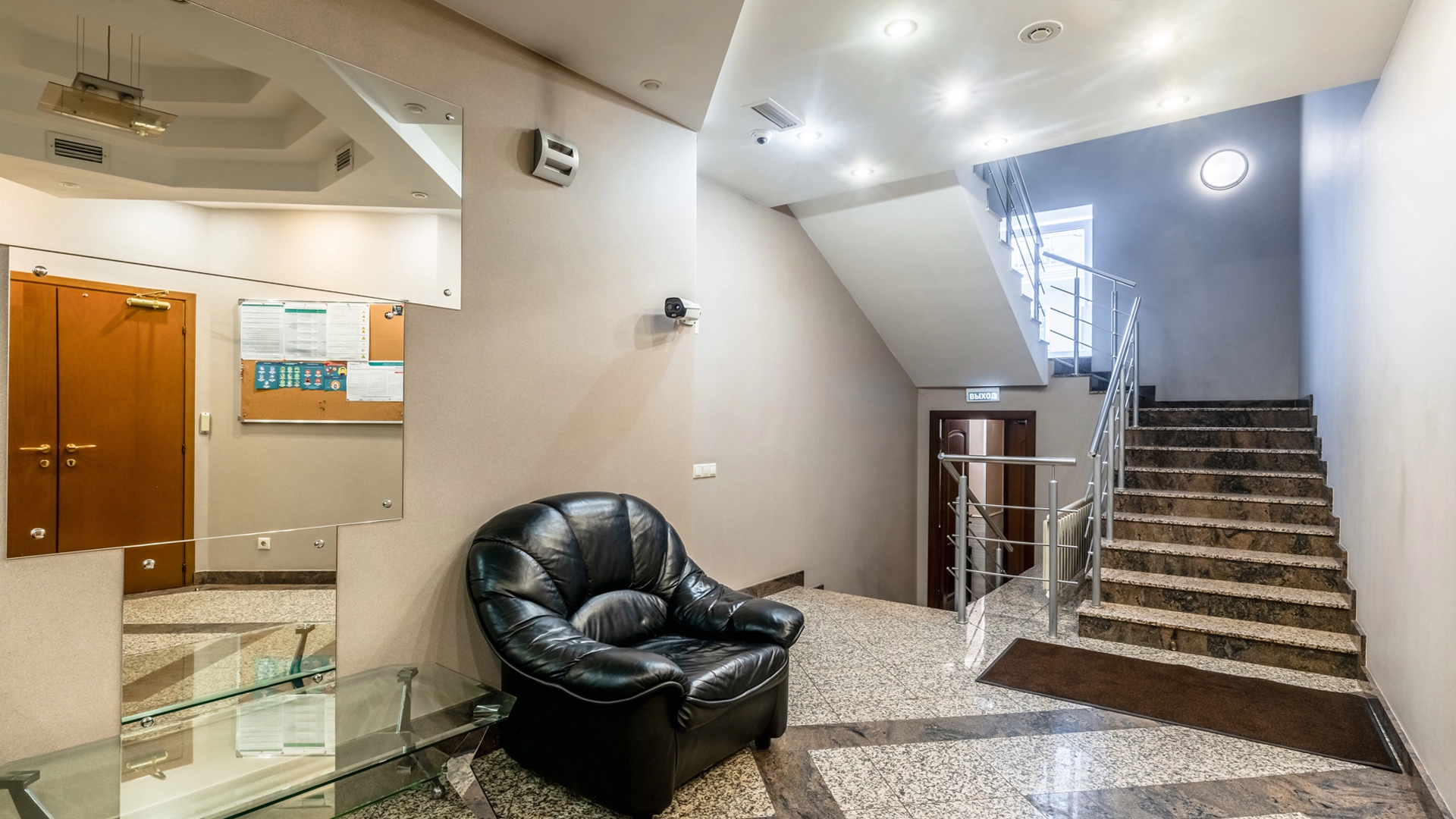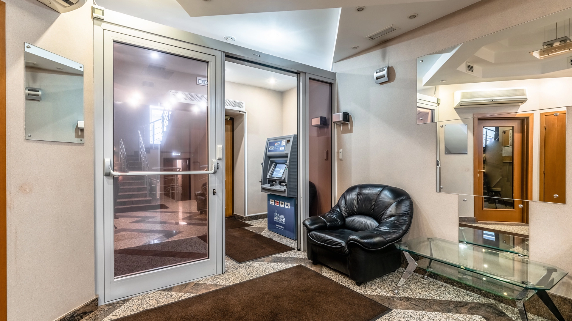 A three-story mansion in the Last Lane in Meshchansky district. The building with brick walls and reinforced concrete ceilings was built in 2000. The facade is made in light gray color, the 1st floor is faced with decorative stone tiles. Two entrance groups are located on the sides of the street and courtyard. Inside the office layout and quality office repair, ceiling height of 3 meters. Central communications are carried out, supply and exhaust ventilation and split-systems are installed. On the fenced territory there is a parking lot for 4 cars. The mansion is suitable for a representative office, company office and medical center.