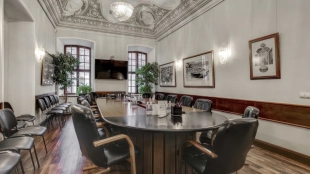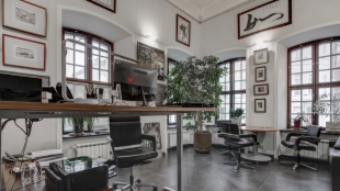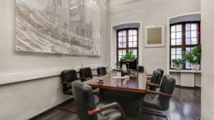 A two-story mansion with a mansard on Myasnitskaya Street in the Basmanny District. The 19th century mansion was restored in 1997, including the addition of a mansard floor, major repairs and restoration of the historic facade. Inside there is a mixed layout with spacious halls and private offices. High-quality materials were used in the finishing, some of the rooms are decorated with stucco with floral patterns and hanging chandeliers. On the first floor there is a conference hall with a fireplace made of marble with gold spraying. There is a ground parking lot for 15 cars in the closed courtyard. The mansion is suitable for a bank, a representative office or a company office.