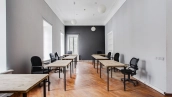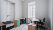 Two-story mansion in Vorontsovsky Park in the south-west of Moscow. Classic mansion built in 1780. The building after restoration in 2018 is equipped with modern engineering and communication systems. Inside there is a cubicle layout and high-quality office finishing. The interiors of some rooms are supplemented with moldings with sculptures of people. The offices with high ceilings are filled with natural light penetrating through large windows. A stone staircase with wrought iron railings leads to the second floor. There is a convenient city parking lot next to the park. The mansion is suitable for an office.