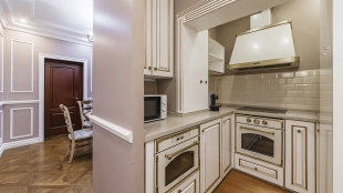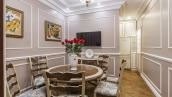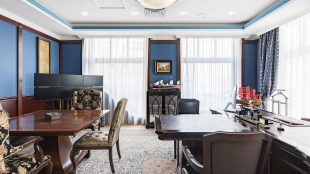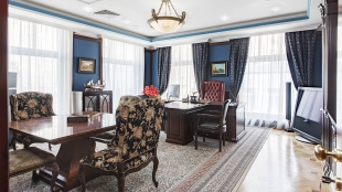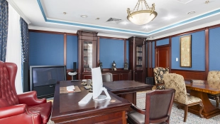 A separate block in a mansion in Zemledelchesky Lane in Khamovniki. The block occupies the second floor of the office and residential building built in 2004. Inside there is a cabinet layout, VIP-zone for the management with an apartment, a meeting room, a number of offices, a kitchenette, a server room and an open terrace. Natural materials are used in the design finishing: solid wood, marble and silk. Residents have access to the infrastructure of the complex with a restaurant, gym and swimming pool. The building is equipped with modern elevators Schindler, the underground parking lot has 3 spaces. The block is suitable for a representative office or residence.