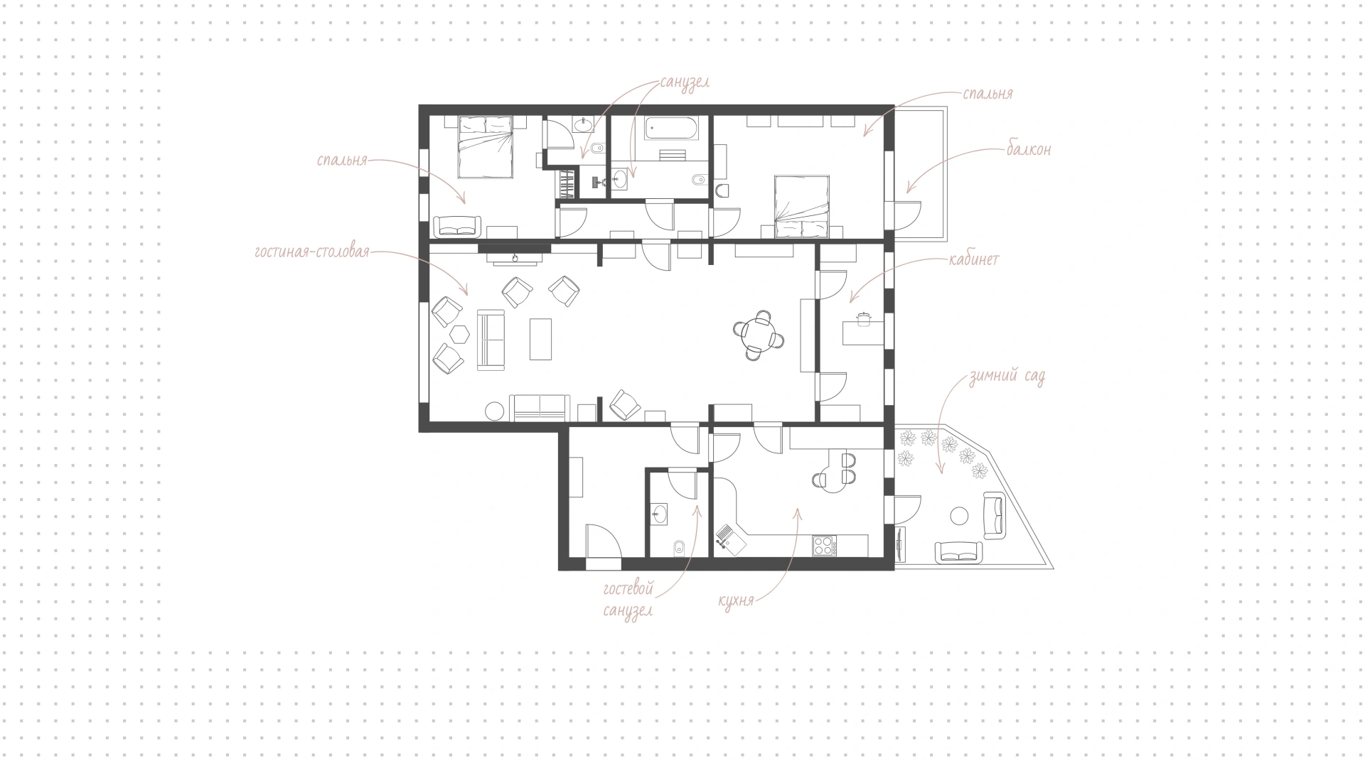 Layout: spacious living room, 2 bedrooms, study, 3 bathrooms, dressing room, winter garden, loggia. There is a supply and exhaust ventilation and air conditioning system. The windows overlook a landscaped courtyard with a fountain and a quiet street. Parking space in the underground parking for a separate cost.