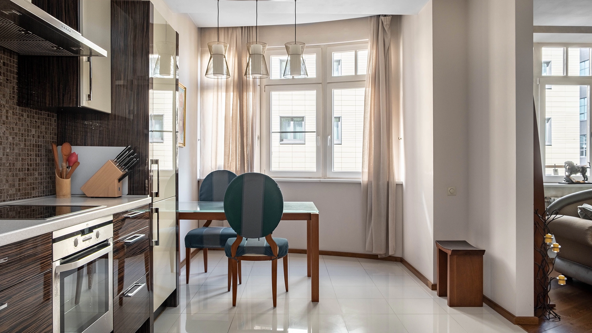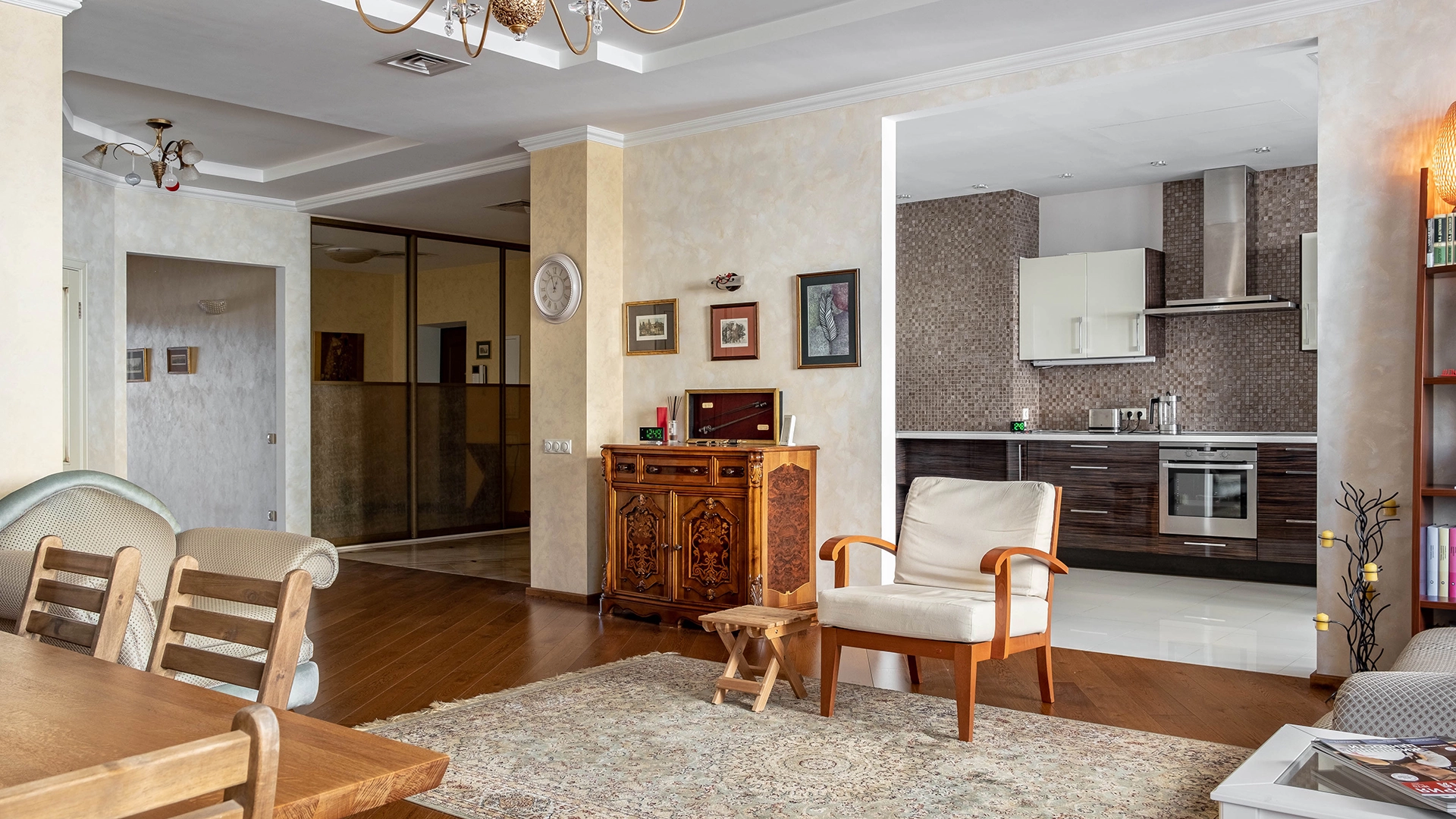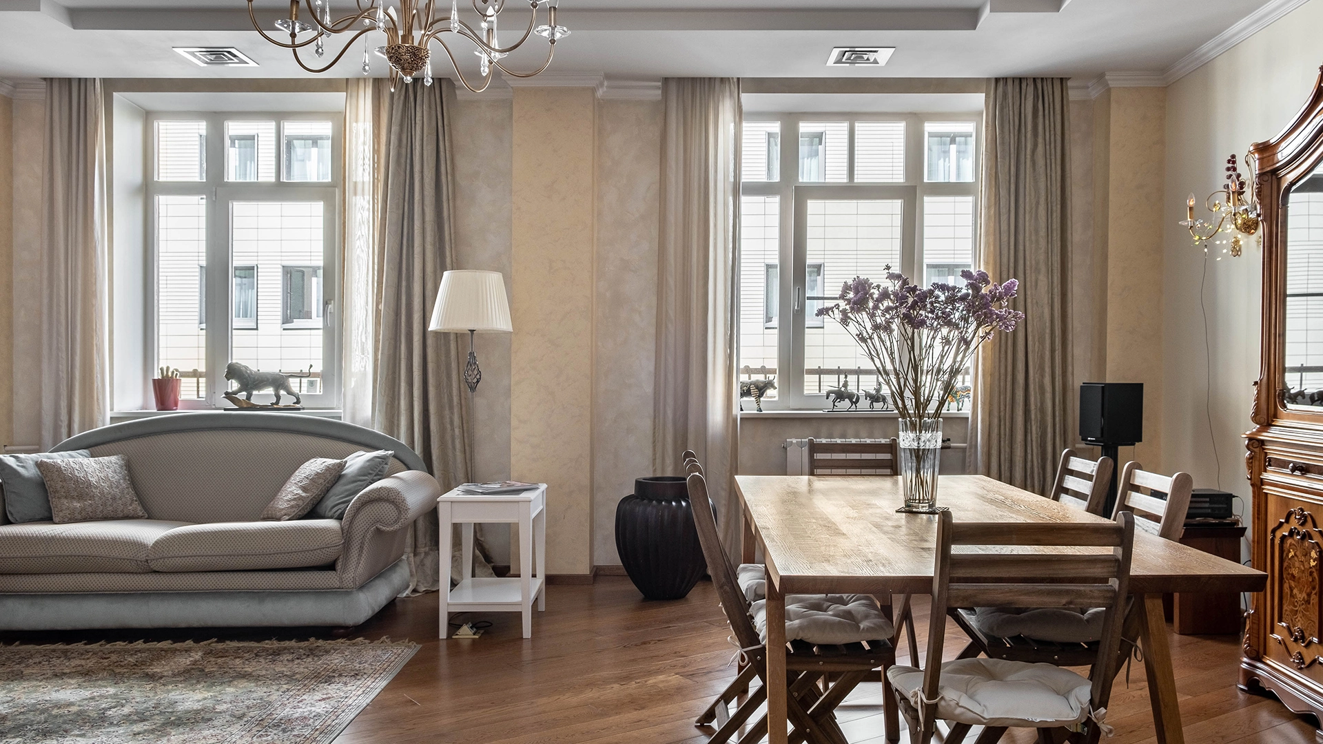 Spacious two-bedroom apartment with total area of 150 m² in the business class complex "Bakhrushina, 13" on the 5th floor. It is decorated in classic style in light colors. There is a living-dining room, a kitchen with a dining area, two bedrooms, a bathroom, two bathrooms, a hallway. The apartment is fully furnished and equipped with household appliances. Removal of furniture is discussed. Installed split-system and underfloor heating. The windows overlook a quiet courtyard. The price includes a parking space in the underground parking at the elevator.