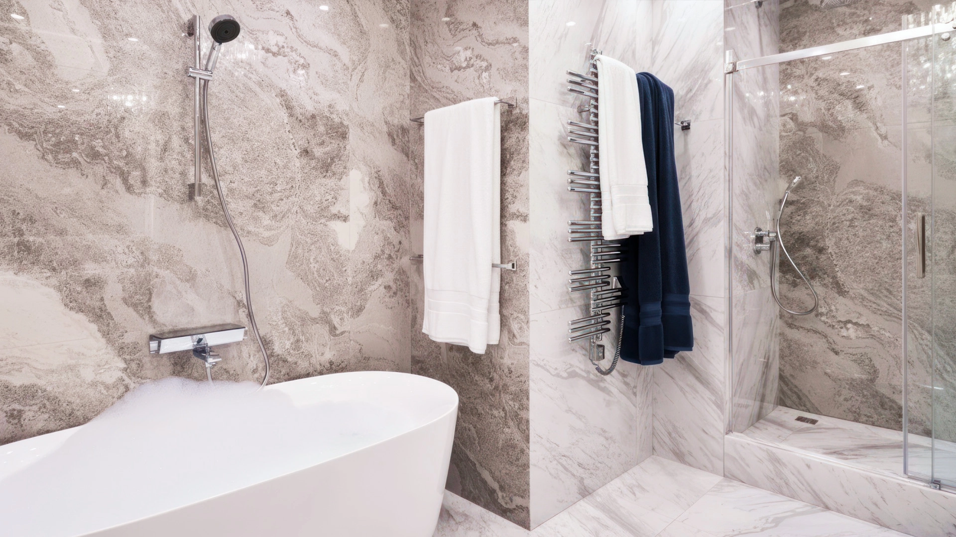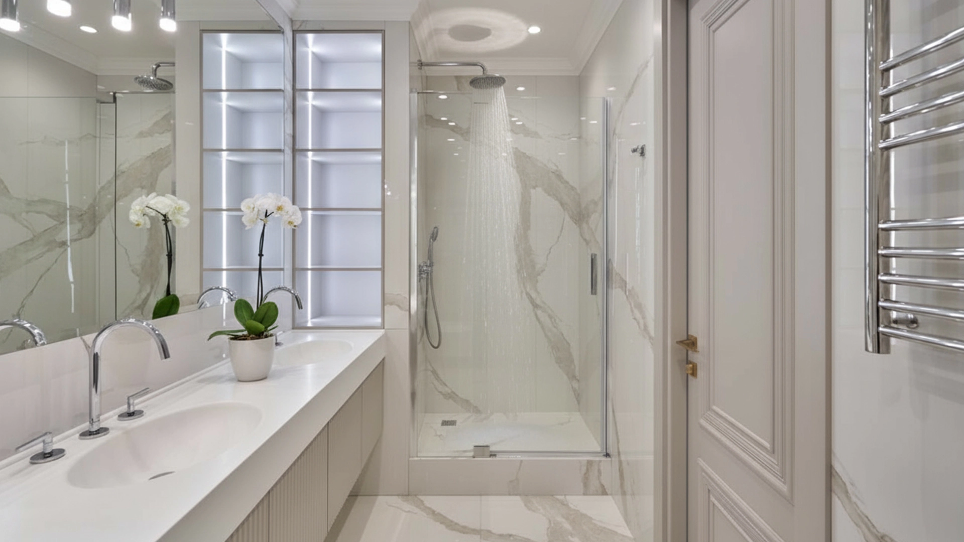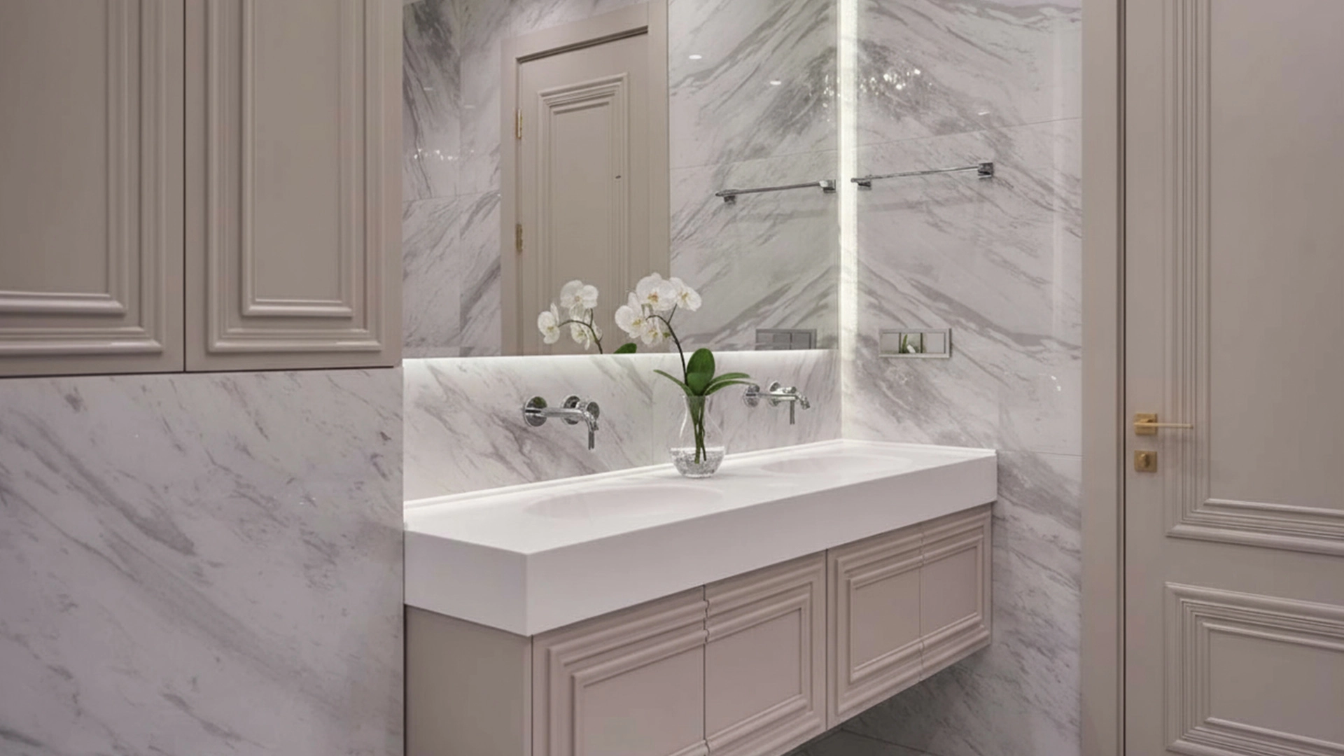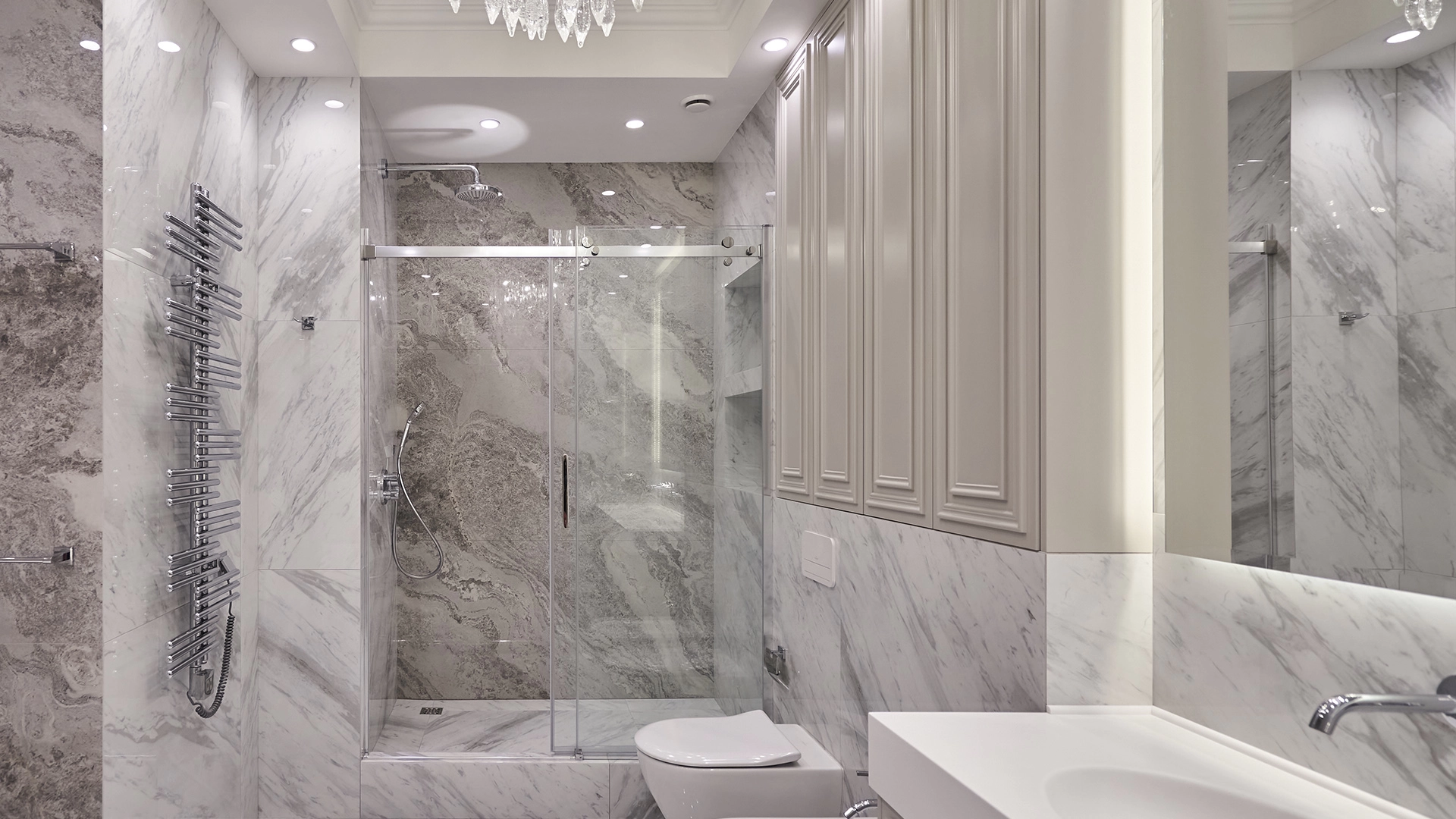 The apartment has a corner kitchen-living room, master bedroom with its own dressing room and bathroom, 2 bedrooms, dressing room, 2 bathrooms, hallway. Thanks to panoramic glazing and 3.1 meter high ceilings, the space is filled with air and natural light. The windows overlook the internal park.