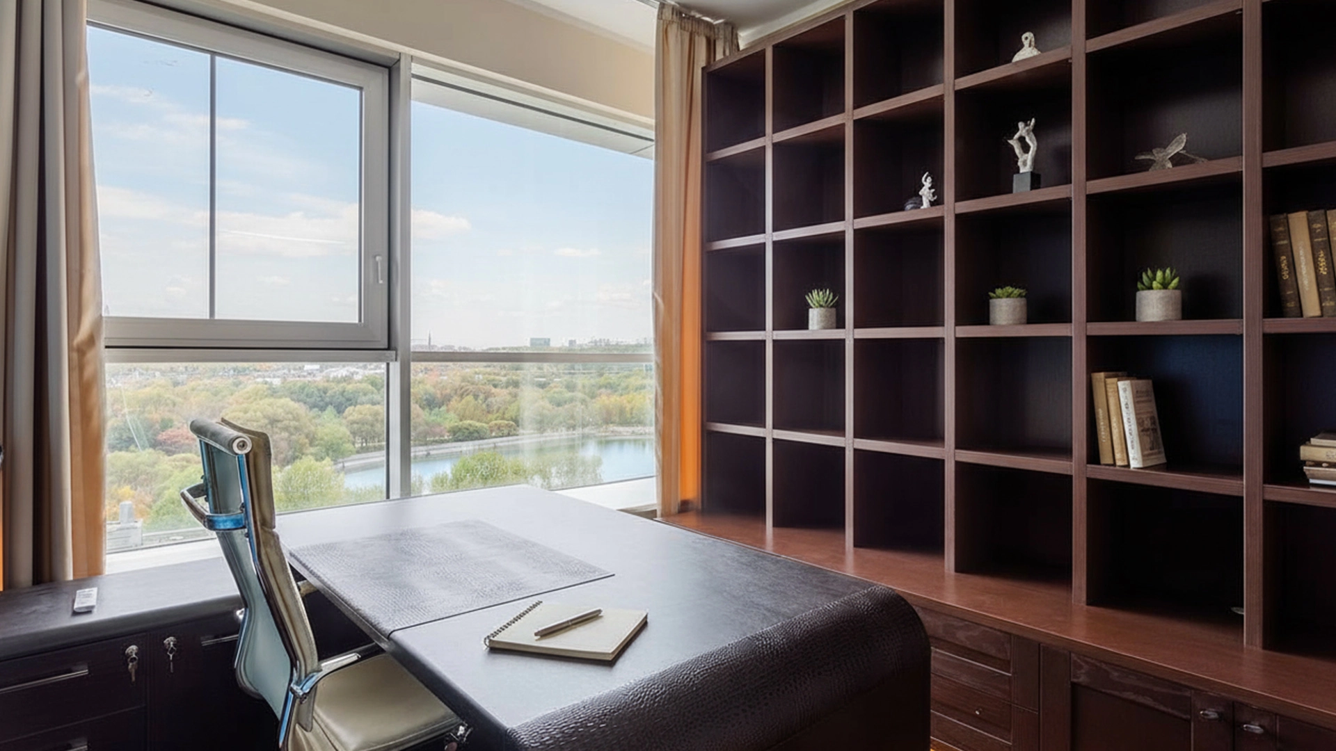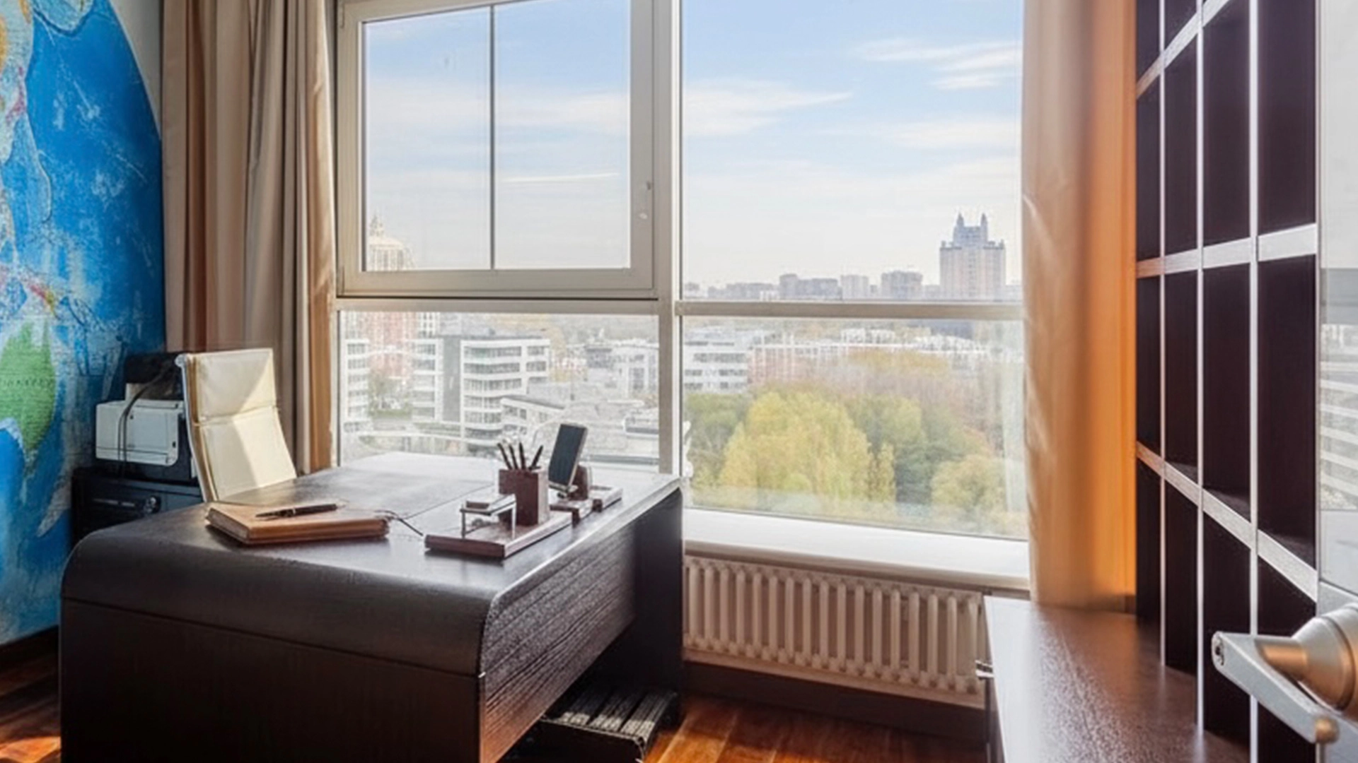 Planned corner kitchen-living room with dining area, 5 bedrooms, bathroom, 3 bathrooms, 2 dressing rooms, hallway. The apartment is partially furnished and fully equipped with household appliances. Removal and purchase of furniture is discussed. Installed supply and exhaust ventilation system and air conditioning, underfloor heating. The windows offer picturesque views of the lake and the courtyard. The price includes 2 parking spaces in the underground parking.