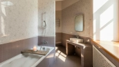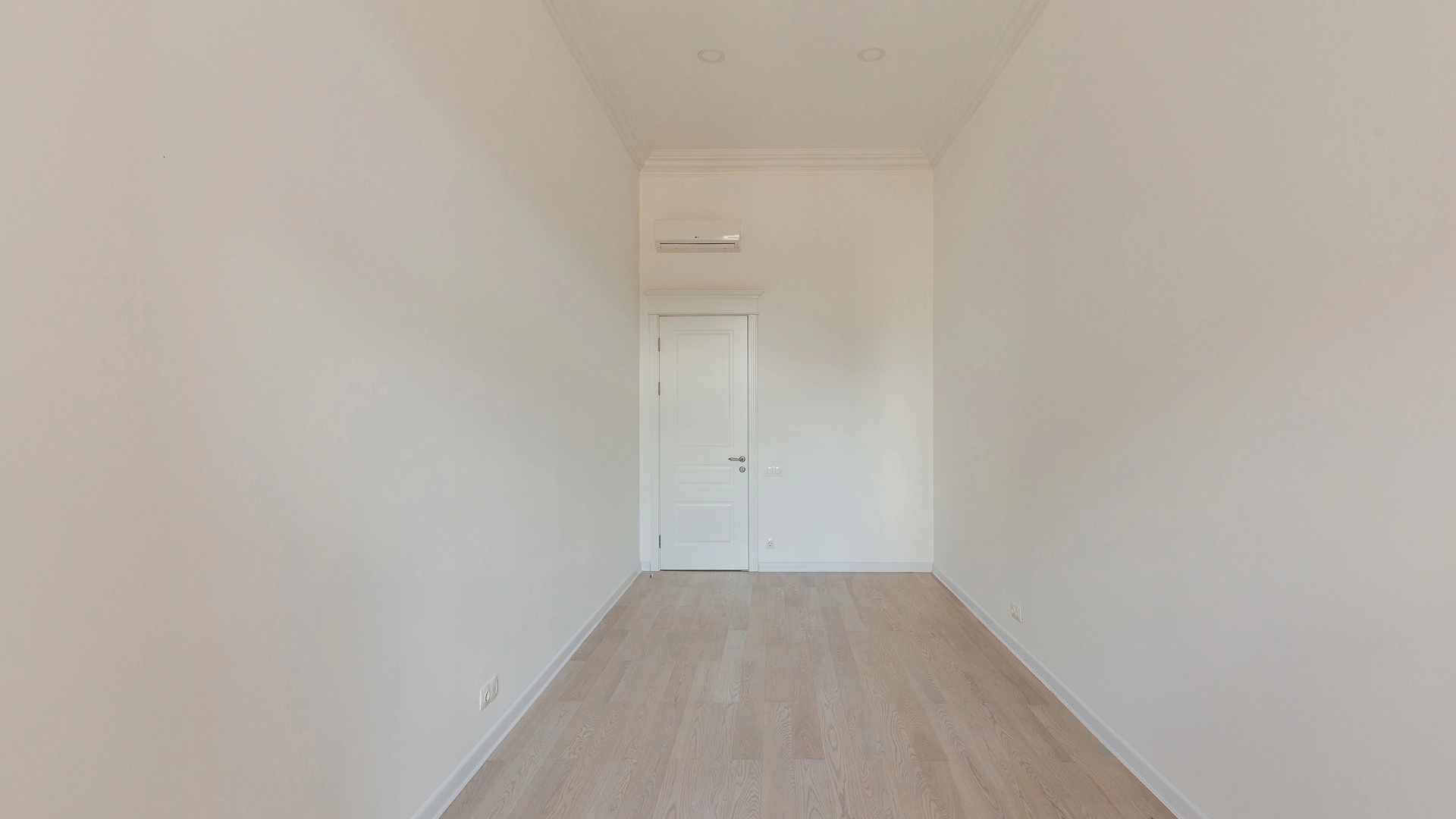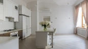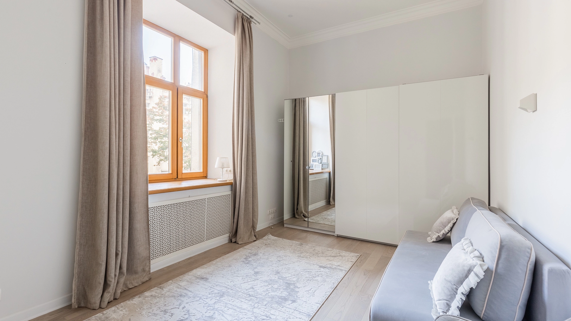 Spacious apartment with seven bedrooms in the house "Sretensky Boulevard, 6". The apartment with two entrances with a total area of 301 m² is located on the third floor. The interior is decorated in light colors, with parquet and tiles on the floor. Individual air conditioning and water leakage protection systems are installed.