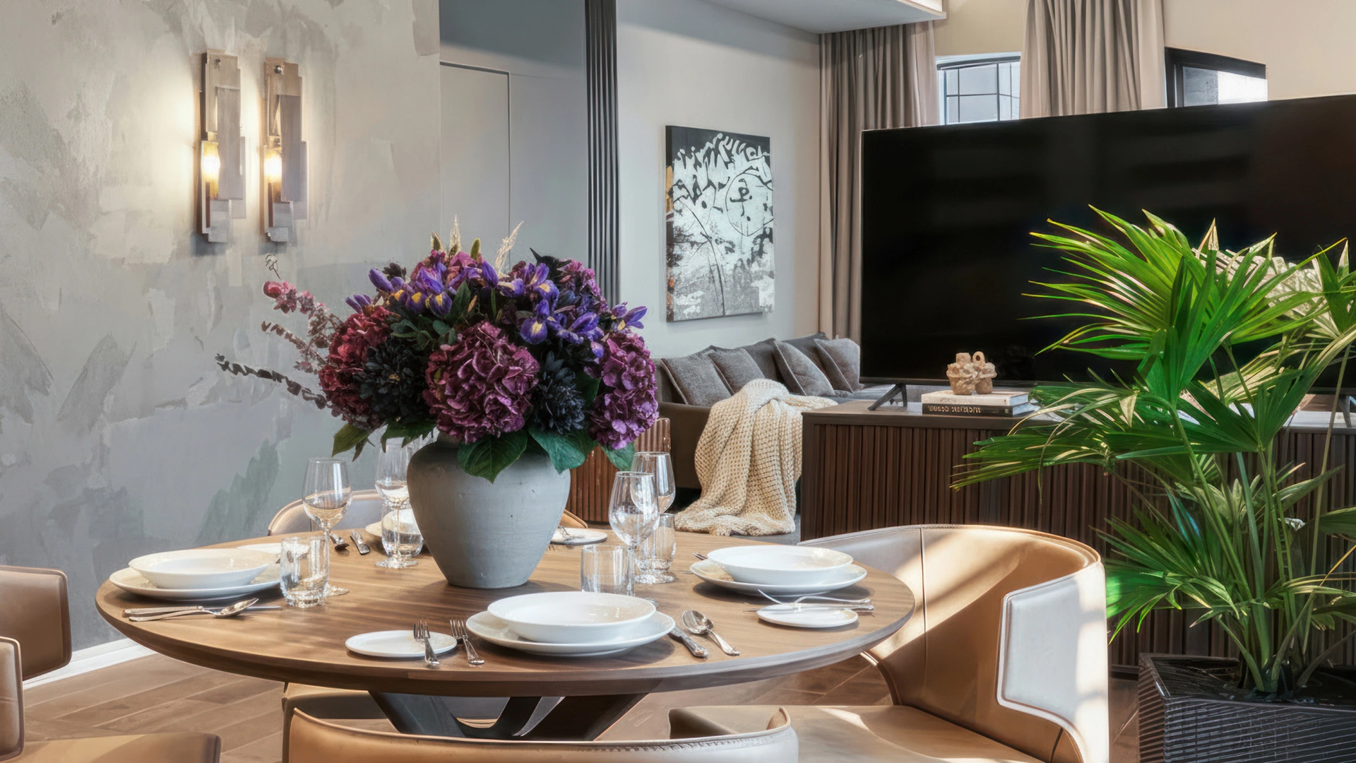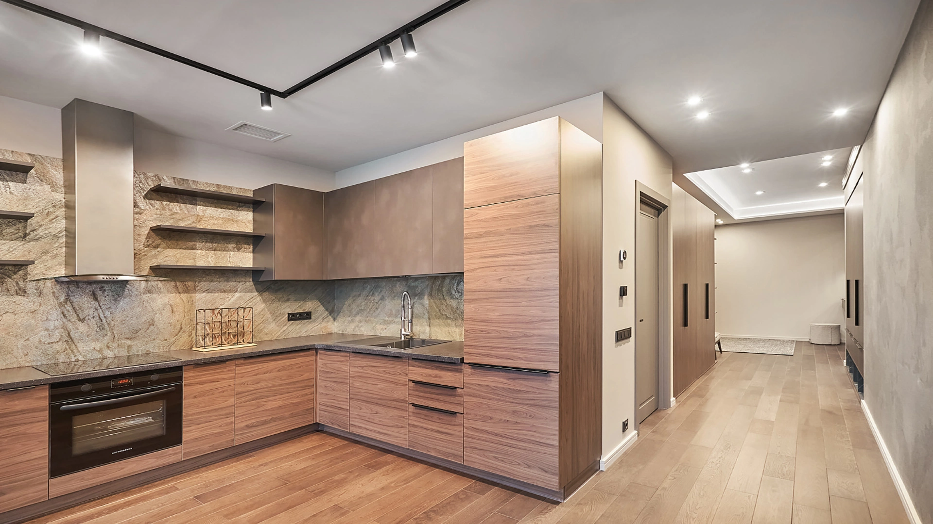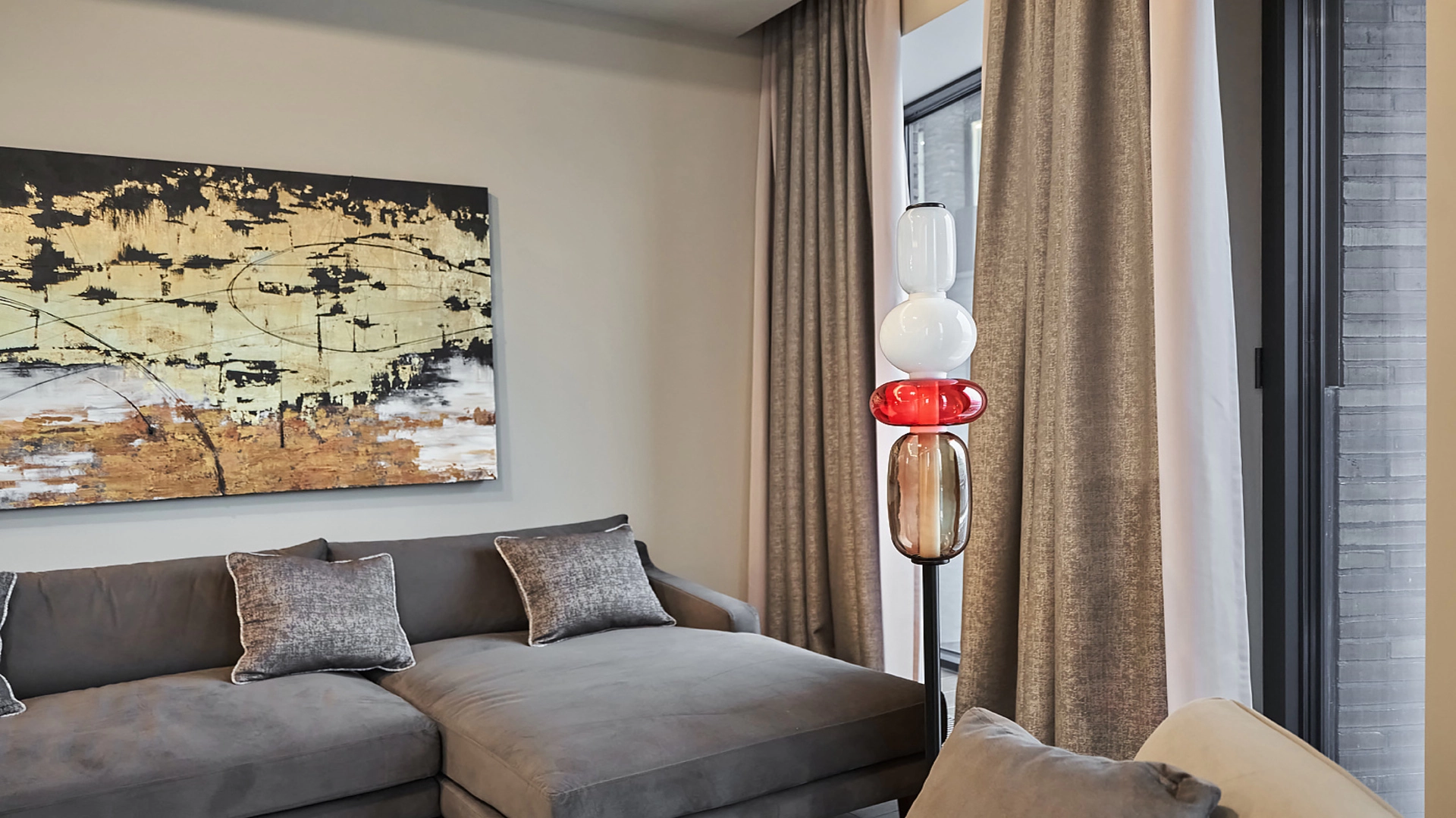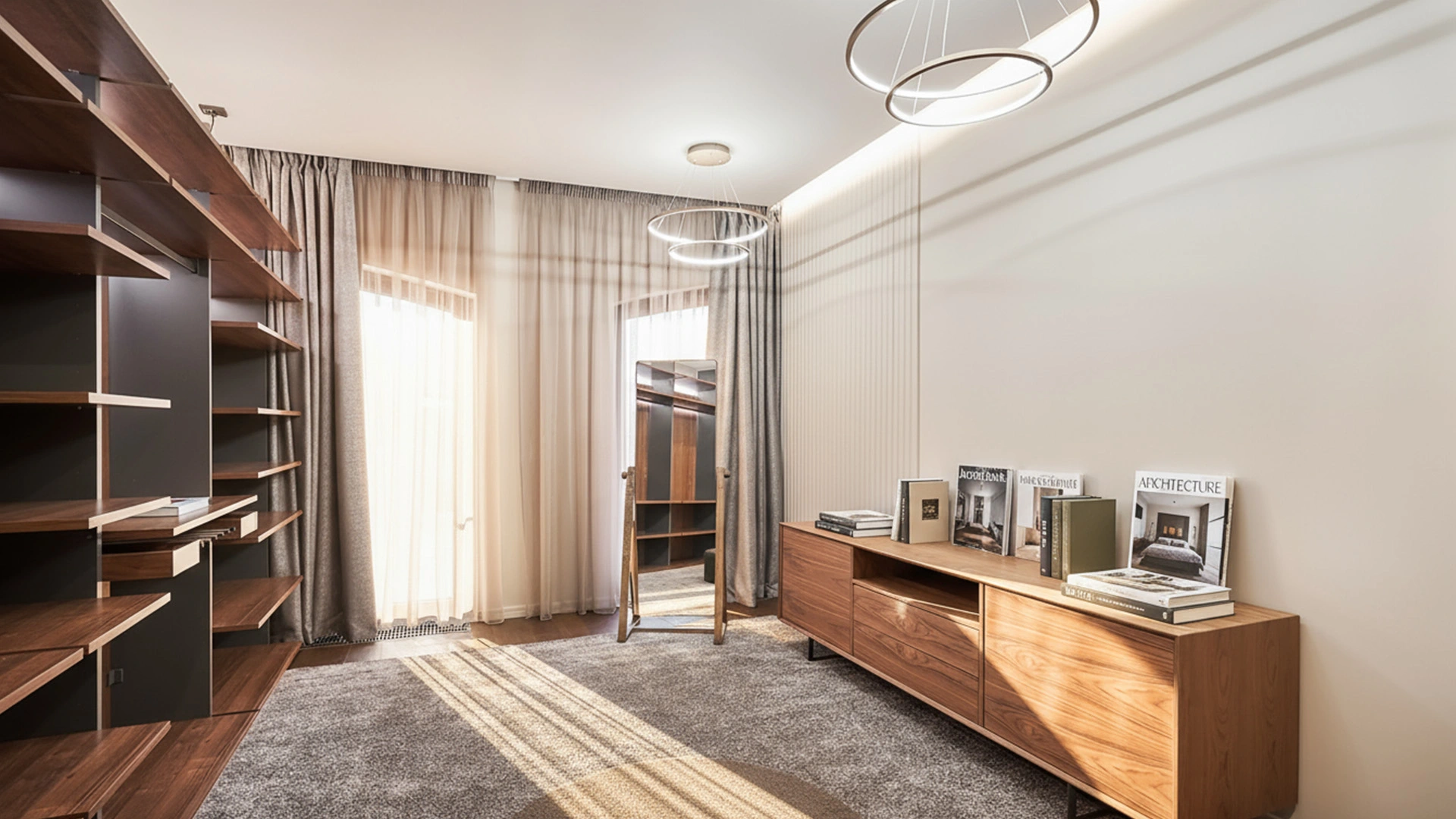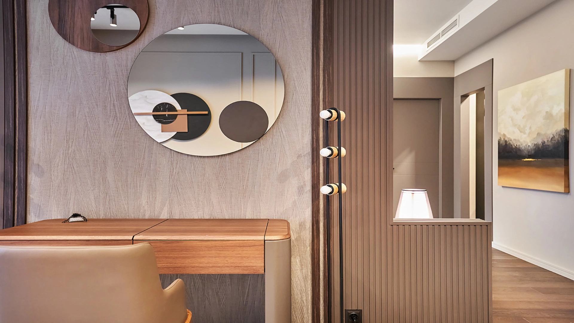 Spacious 2-bedroom apartment of 150 m² located on the 3rd floor of a premium complex by the river. It has been renovated in a modern style. The interior is decorated in warm sandy shades. The apartment is furnished and equipped with Kuppersberg appliances.
