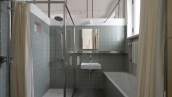 The layout includes a long corridor with built-in closets and shelving, a living room, three rooms that can be used as bedrooms, a study, an isolated and fully equipped kitchen, a bathroom, a shower room, a guest toilet, a dressing room and two storage rooms.