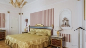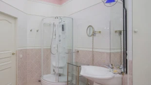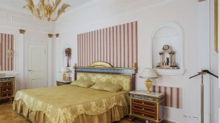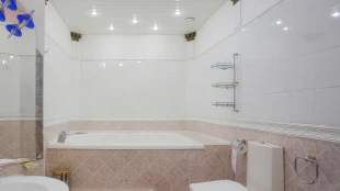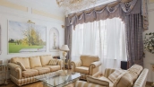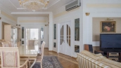 Spacious 3-bedroom apartment with a total area of 180 m² in the house "Vspolny Pereulok, 17" on Patriarch's Ponds. The interior is decorated with paintings and stucco decor. The ceiling height is 3 meters. Layout: living room with dining area, kitchen, two bedrooms, study, main and guest bathroom, dressing room, loggia with sitting area. The apartment is fully furnished and equipped with household appliances. Dishwasher and washing machine, air conditioners are installed. The windows face two sides overlooking the street and the courtyard.
