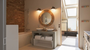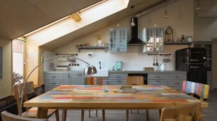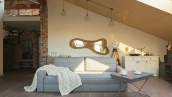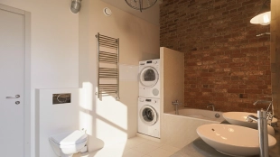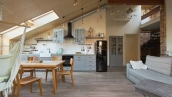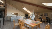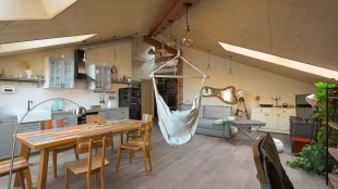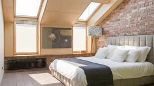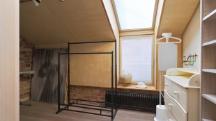 Two-level attic apartments with total area of 126 m² in the loft-quarter "Danilovskaya Manufaktura". Designer renovation with the use of natural materials - on the floor there is a three-layer array of German oak Monblan, ceiling covering is made of birch, walls are decorated with brick, in the kitchen and bathrooms the countertops are made of concrete. The bathrooms are equipped with underfloor heating and sanitary ware of Villeroy & Boch and Hansgrohe brands. Supply and exhaust ventilation and air conditioning systems are installed. Velux roof windows with filter system fill the space with natural light.