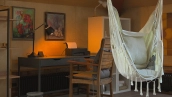 Layout: kitchen-living room with dining area, bedroom, second light with sleeping area, bathroom, bathroom with shower, dressing room. The apartment is fully furnished and equipped with all necessary appliances, including a refrigerator and dishwasher from Smeg brand, as well as a washing machine and dryer from Bosch brand. There is plenty of storage space. The interior is decorated with unusual design elements such as lamps, paintings and designer mirrors with frames made from old Balinese boats. A parking space in the outdoor parking lot can be rented for an additional fee.