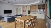 A deluxe class clubhouse for 60 apartments. Of them 10 lots are penthouses with terraces and fireplaces. The project is located in Khamovniki, next to the Novodevichy Ponds park. The club infrastructure includes a fitness room with a swimming pool, a beauty salon, a lounge and a children's playroom.