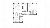 Layout: corner living room-kitchen-dining room, bedroom, study, bathroom, bathroom with shower, guest bathroom, dressing rooms, hallway. The apartment is fully equipped with furniture and appliances. There is a washing machine, dishwasher, air conditioning system.