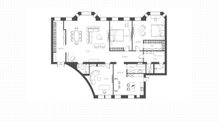 Spacious 3-bedroom apartment with an area of 250 m² in the house "Sretenka, 26". The apartment is located on the 4th floor of a historical building in the very center of Moscow. It is finished in a modern style in laconic light colors. Finex engineering board and Italon porcelain stoneware are laid on the floor. Thanks to a large number of windows and 3.7 meters high ceilings, the space is filled with light and air.