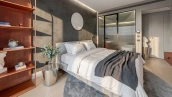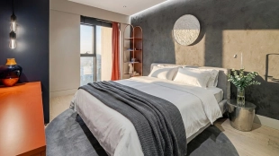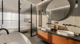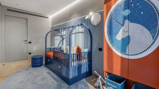 View apartments with 2 bedrooms in the premium-class complex "Poklonnaya, 9" near Victory Park. The interior is decorated in a modern minimalistic style with bright orange accents, the floor is covered with parquet made of wood. Thanks to panoramic windows and high ceilings, the space is filled with natural light and offers picturesque views of Poklonnaya Hill and Victory Park. The apartment is rented for the first time.