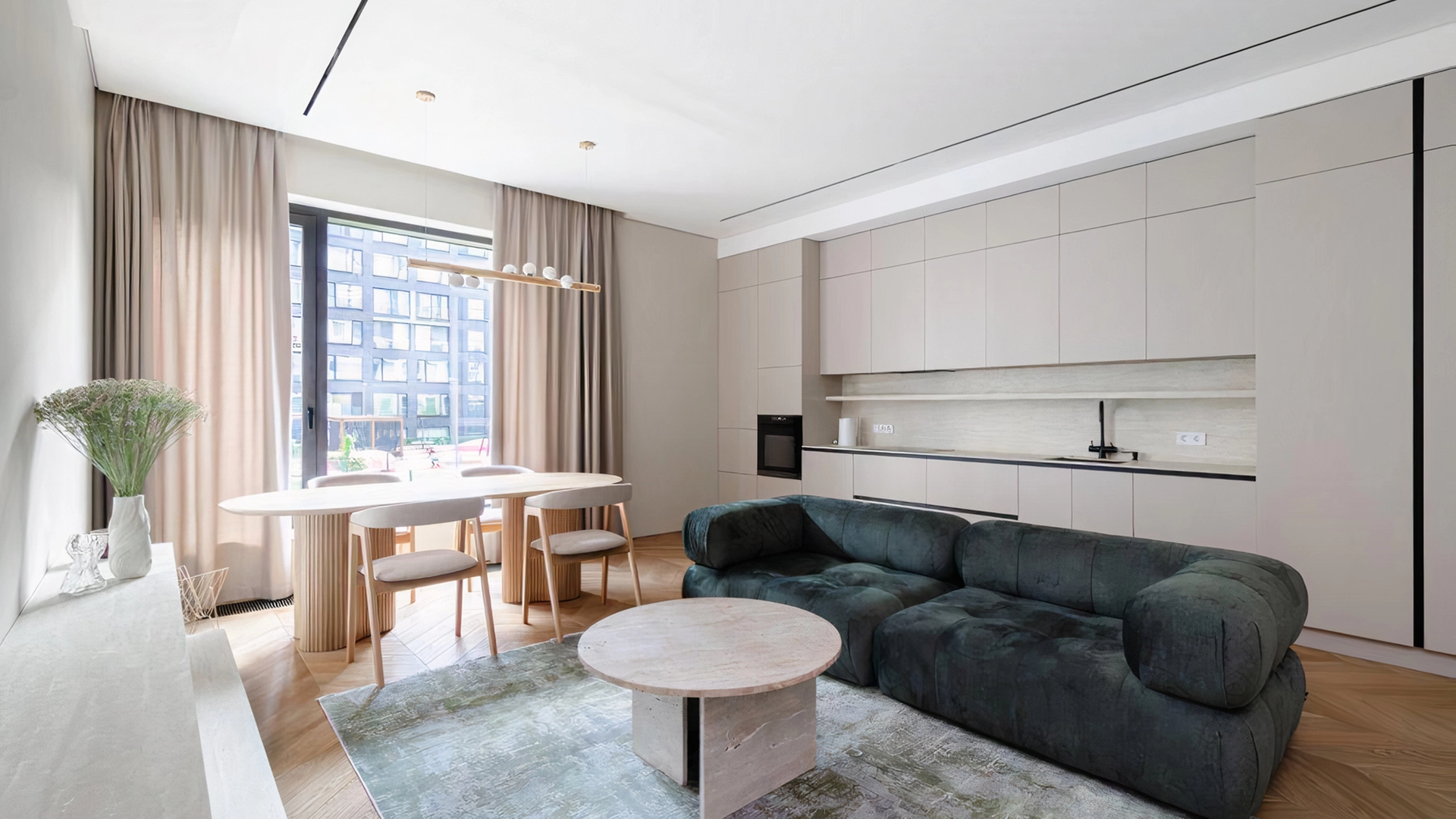 You can choose between a 1-bedroom apartment or a spacious residence with 2-4 bedrooms. All lots have panoramic windows, ergonomic layouts, ceiling heights up to 4 meters. The area of apartments - from 30 to 598 m².