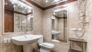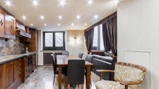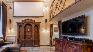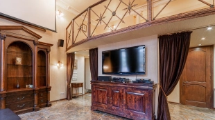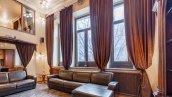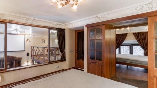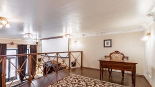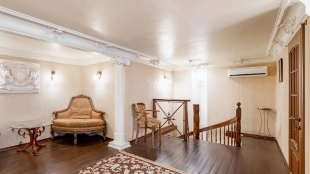 Two-level apartment of 105 sq.m. in a low-rise mansion on the Garden Ring. Designer repair in classic style. Natural wood, stone and light stucco are used in the decoration. High ceilings, in the living room planned second light. The apartment is equipped with leather and antique wooden furniture, household appliances.