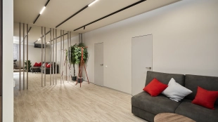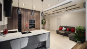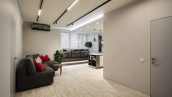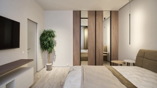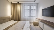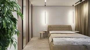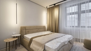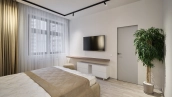 1-bedroom apartment with total area of 75 m² in the business class complex "Donskoy Olympus". The apartment is renovated in a modern style according to the author's design project. Thanks to 3 meters high ceilings and large windows, the space is filled with natural light. Several types of light design, track magnetic lighting system. The windows overlook a quiet private courtyard. The apartment is fully furnished and equipped with all necessary appliances.