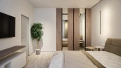 Layout: spacious kitchen-living room, bedroom, bathroom with shower, dressing room, hallway. There is a sofa bed, a bed with storage space, a table made of porcelain stoneware, bedside tables made of stone. In the kitchen Japanese faucet Omoikiri. In the bathroom hygienic shower. Split-system air conditioning, underfloor heating, podium heating. The price includes utility bills. Parking space in the underground parking is included in the price.