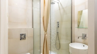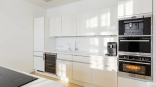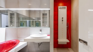 Bright 3-bedroom apartment with total area of 104 m² in the "Faleyev House" on Lubyanka Street in the very center of Moscow. The interior is decorated in the style of modern minimalism. There is a kitchen-living room with access to the balcony, a master bedroom with its own bathroom and access to the balcony, a second bedroom, a study, a dressing room, a second bathroom with shower, a laundry room and a balcony. Ceiling height of 3 meters. The apartment is equipped with furniture and appliances Kuppersbusch, Schulthess Maschinen AG, closet system of premium class Molteni&C. All sanitary ware is presented by Flaminia brand. Air conditioning system, washing machine, dishwasher, underfloor heating. The windows overlook the courtyard.