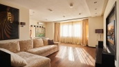 Spacious 2-bedroom apartment with total area of 140 m² in Krasnoselsky district. The apartment is decorated in a modern style in light colors. The ceilings are 3.2 meters high and fill the space with air. There is a living room, a kitchen-dining room, a bedroom with a dressing room, a second bedroom with access to the balcony, a bathroom, a guest bathroom, a hall. The apartment is fully furnished and equipped with household appliances. The windows are oriented on 2 sides, opening panoramic views of the city. It is possible to rent a parking space in the underground parking and in the parking lot in the closed courtyard.