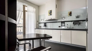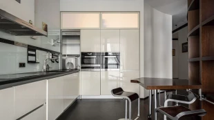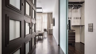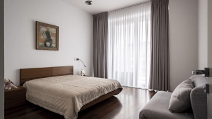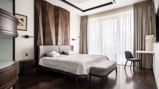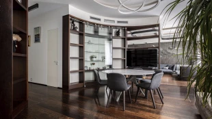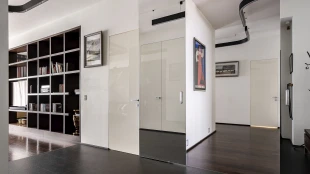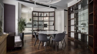 Spacious apartment of 208 sq.m. in the deluxe club house Crystal House on the Golden Mile in Khamovniki. Modern designer repair. High ceilings, wide panoramic windows in the floor, lots of natural light. The windows face two sides, with views into a private courtyard.