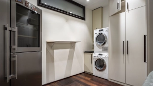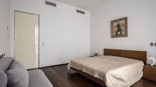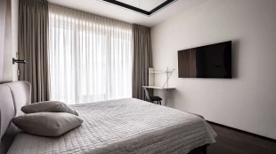 Layout: spacious living room, dining area, kitchen area with built-in appliances, master bedroom with its own bathroom and dressing room, second bedroom, children's bedroom, large laundry room, dressing room, balcony with panoramic glazing in the floor. The apartment is fully furnished and equipped with premium appliances. Air conditioning system, washing machine, dryer and dishwasher are installed. Two parking spaces are included in the rent.