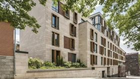 18-storey premium-class house in Presnensky district of Moscow. The facade of the building with panoramic glazing is finished with natural stone and clinker brick. The private territory is under 24-hour security, a children's playground is organized in the courtyard.