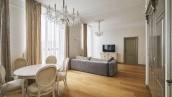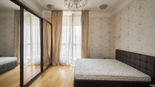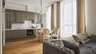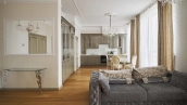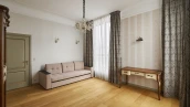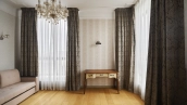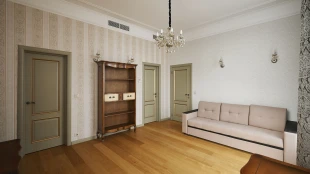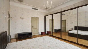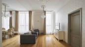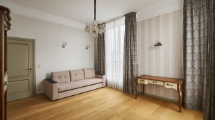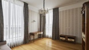 A 3-bedroom apartment with a total area of 177 m² in the premium complex "Sport House" in Khamovniki. The interior is decorated in classic style. Thanks to large windows and high ceilings the space is filled with light. The windows offer views of the street and the city.