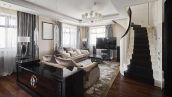 Stylish designer apartment with stunning views of the Moskva River and Serebryany Bor Nature Reserve in Continental complex. This 240 sq.m. duplex apartment is located on the 44th floor. The apartment has a premium designer finish in the style of modern classics. The apartment is fully equipped with premium furniture and appliances and is rented for the first time.