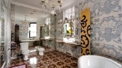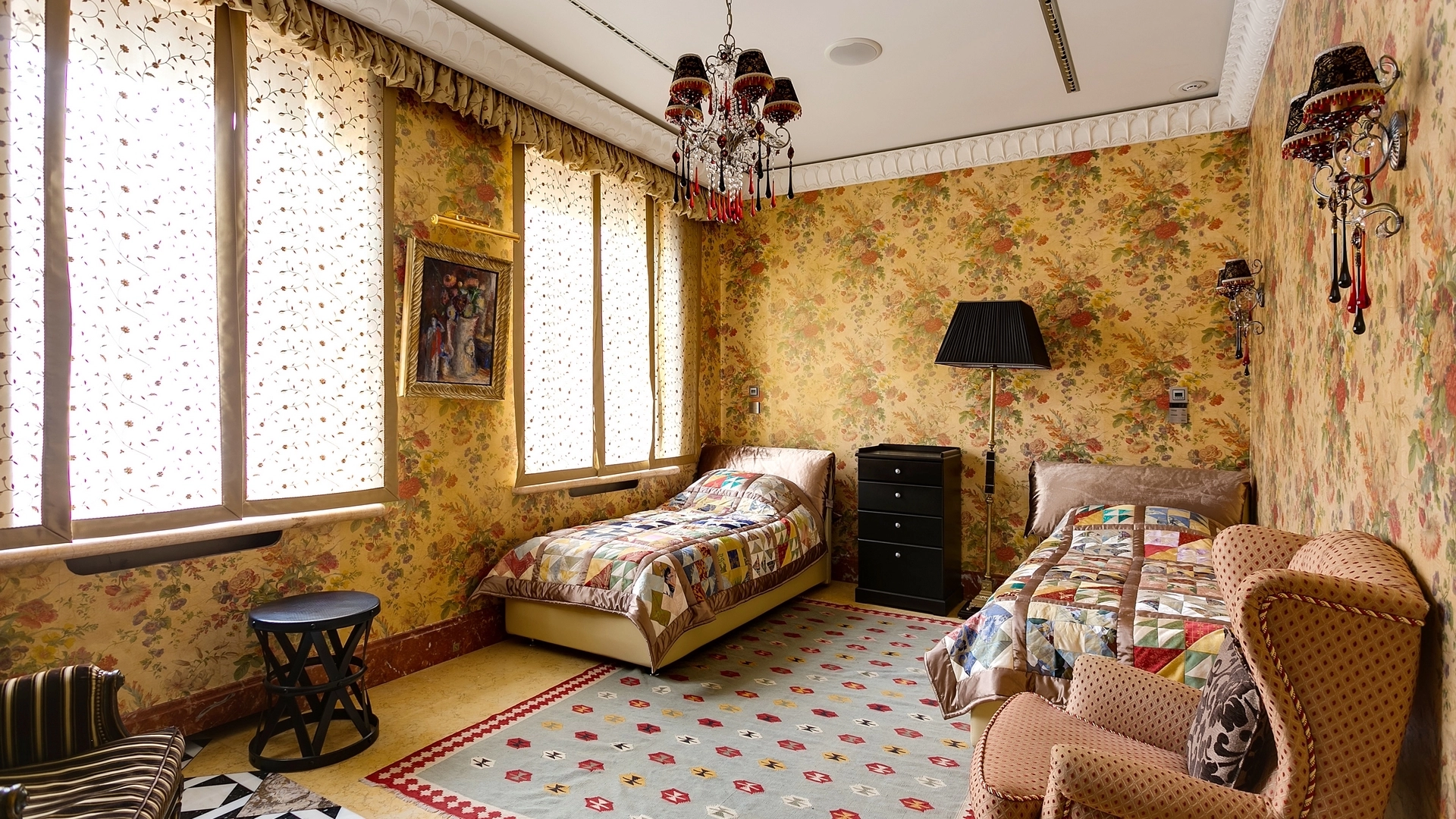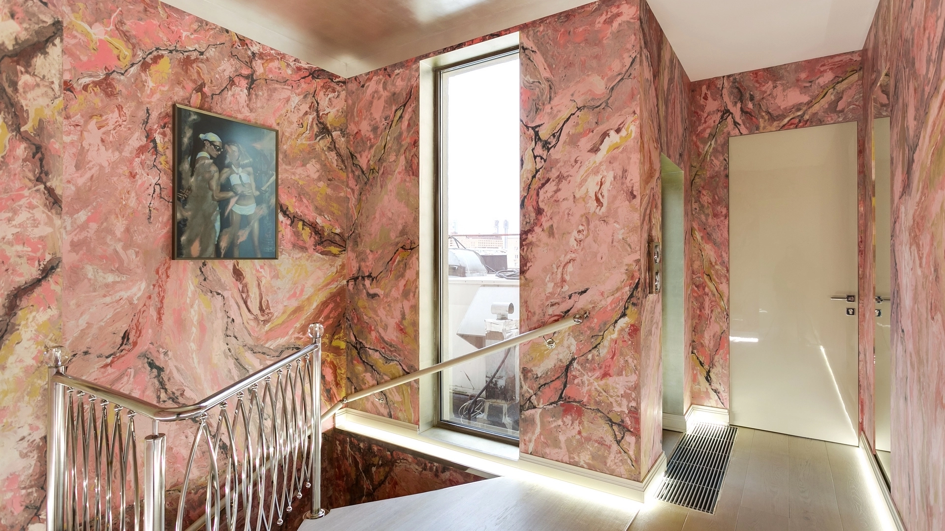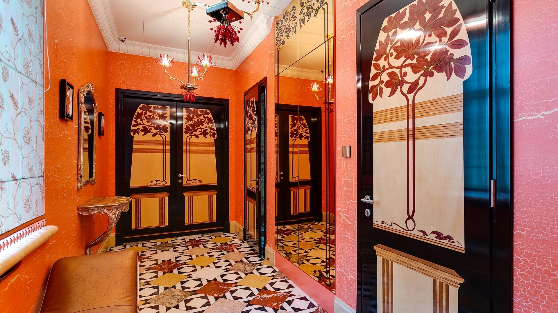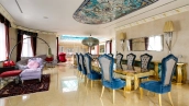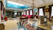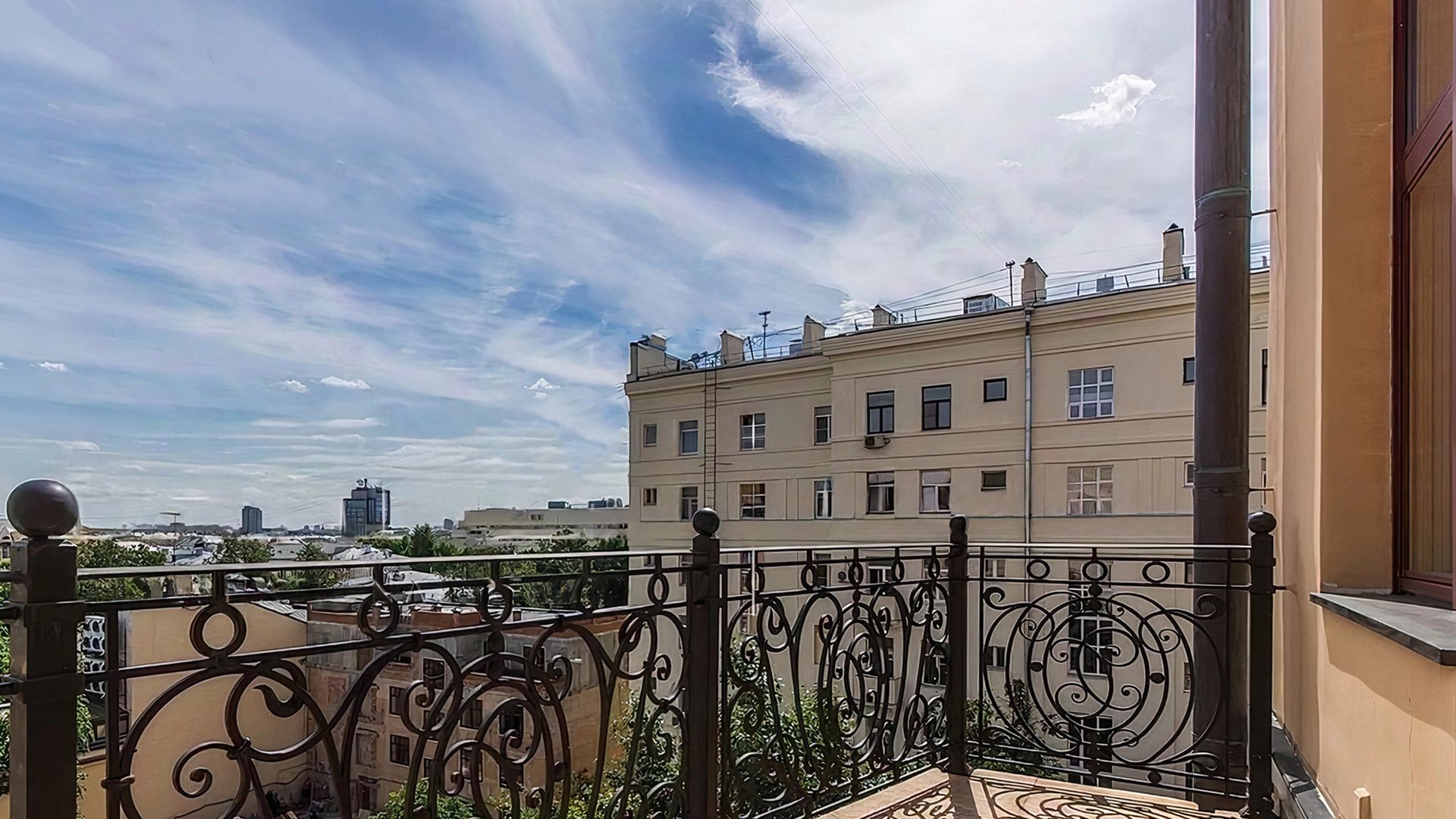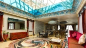 Spectacular three-level penthouse of 700 sq.m. in a mansion on Prechistenka Street. The penthouse with a spacious terrace is located on the 4th-6th floors of the house. Designer repair in palace style. Natural marble, precious woods, stained glass panels and mosaics are used in the decoration. On the ceiling of the last floor is planned glass panoramic dome in the open air. The apartment is fully furnished, equipped with a professional kitchen with appliances. Ceiling height is 3.2 meters.