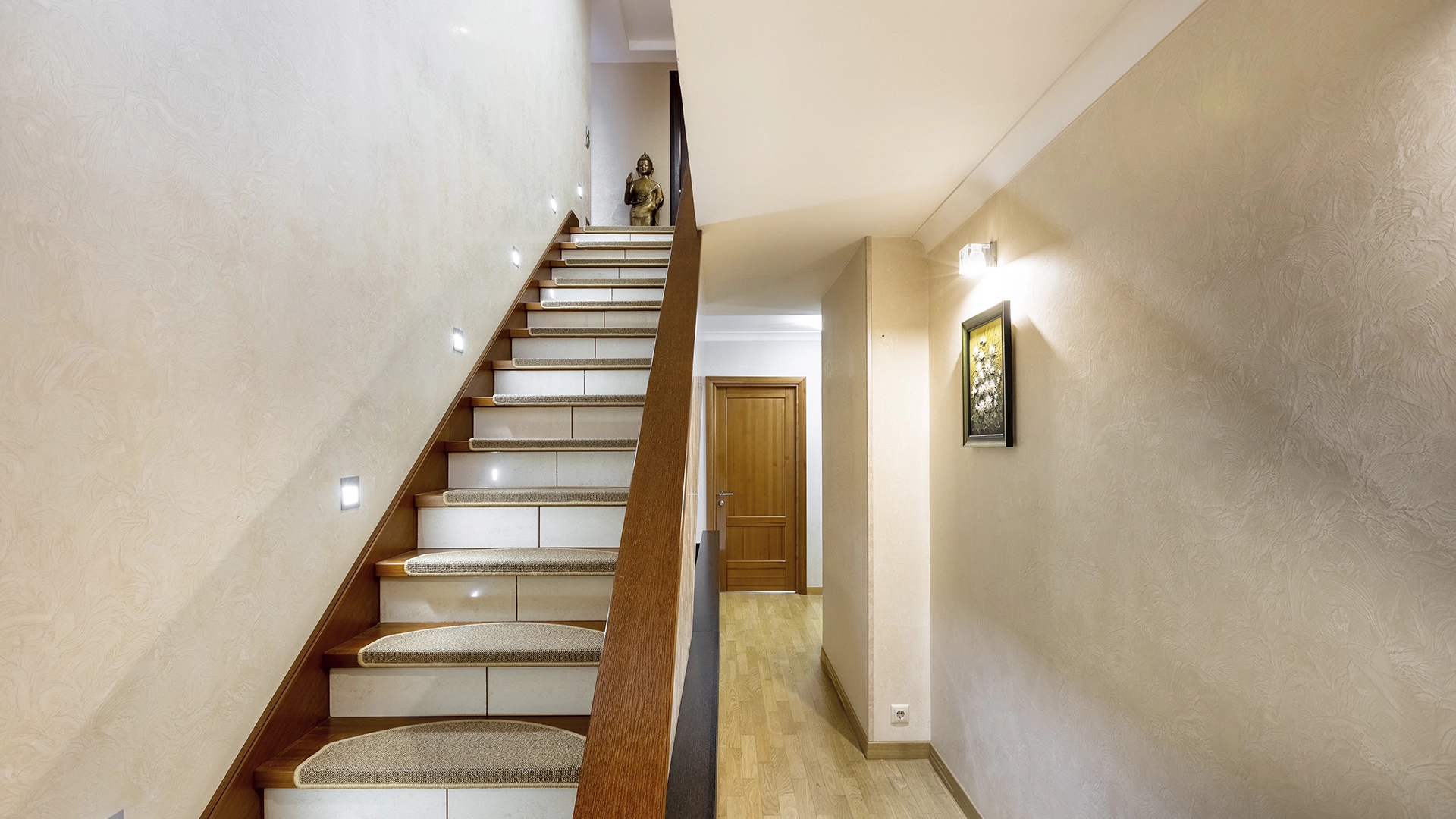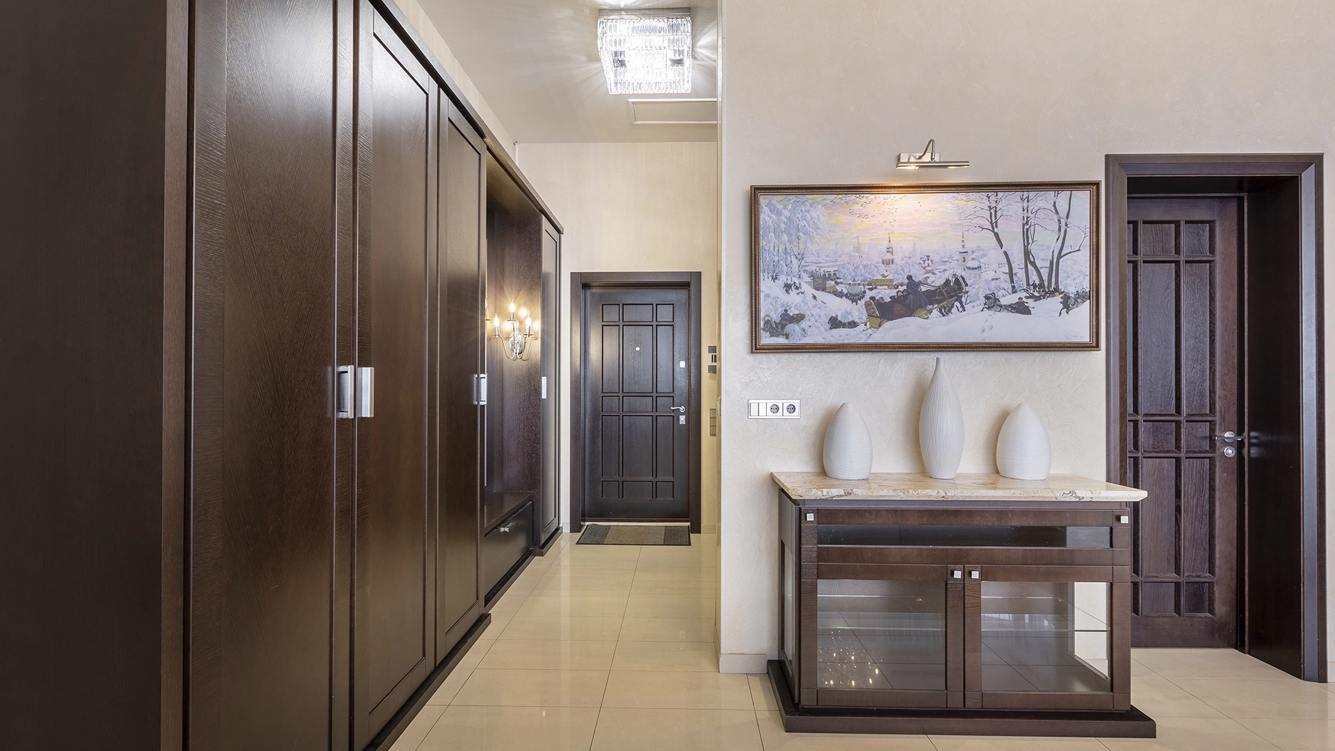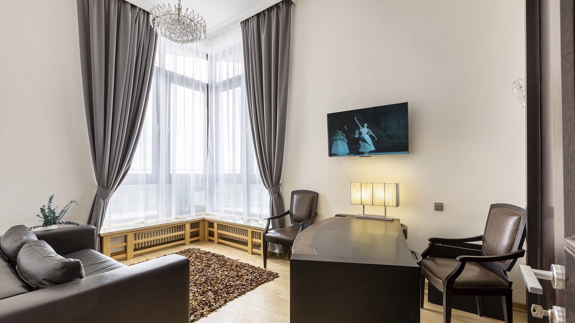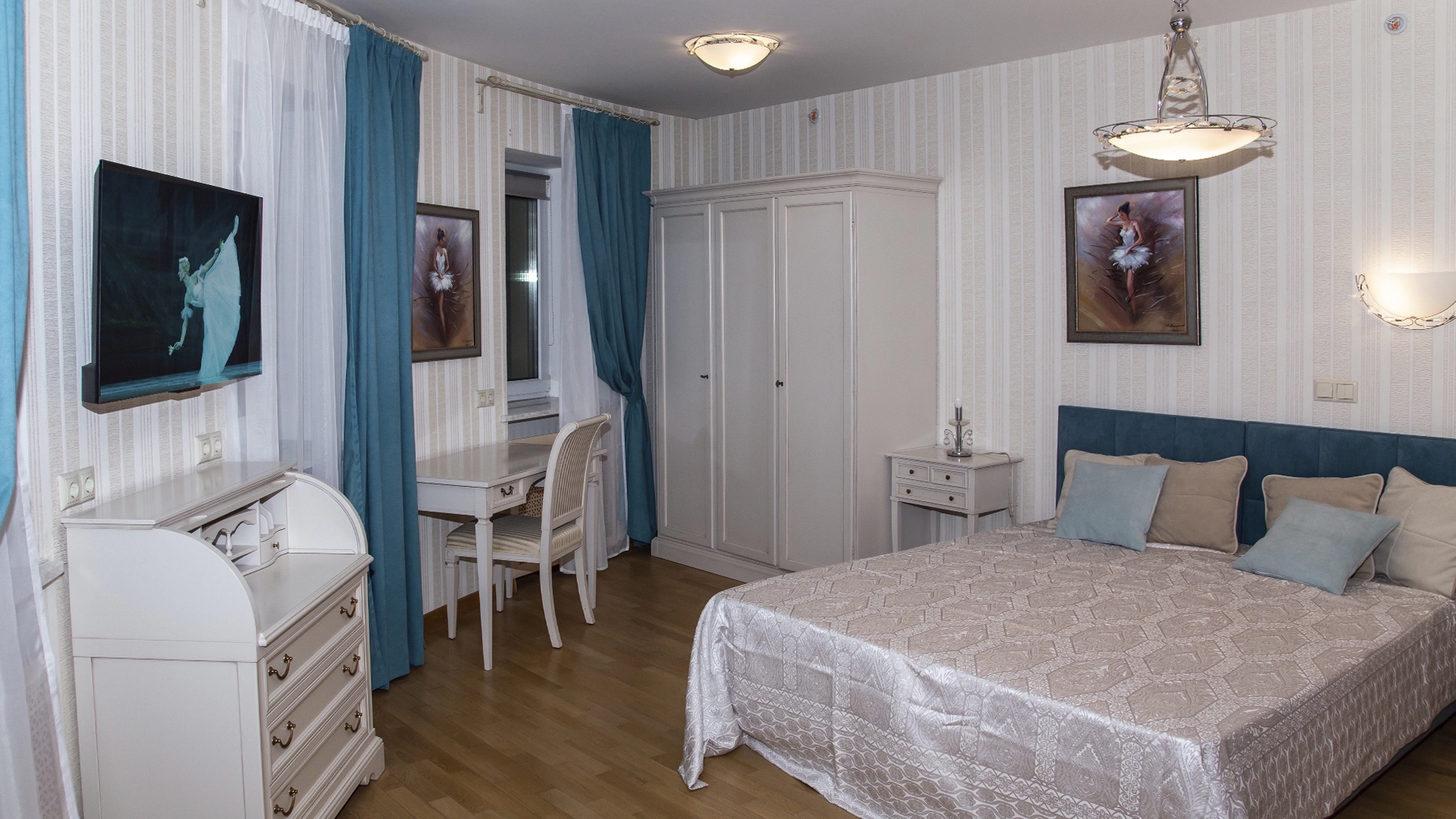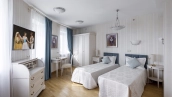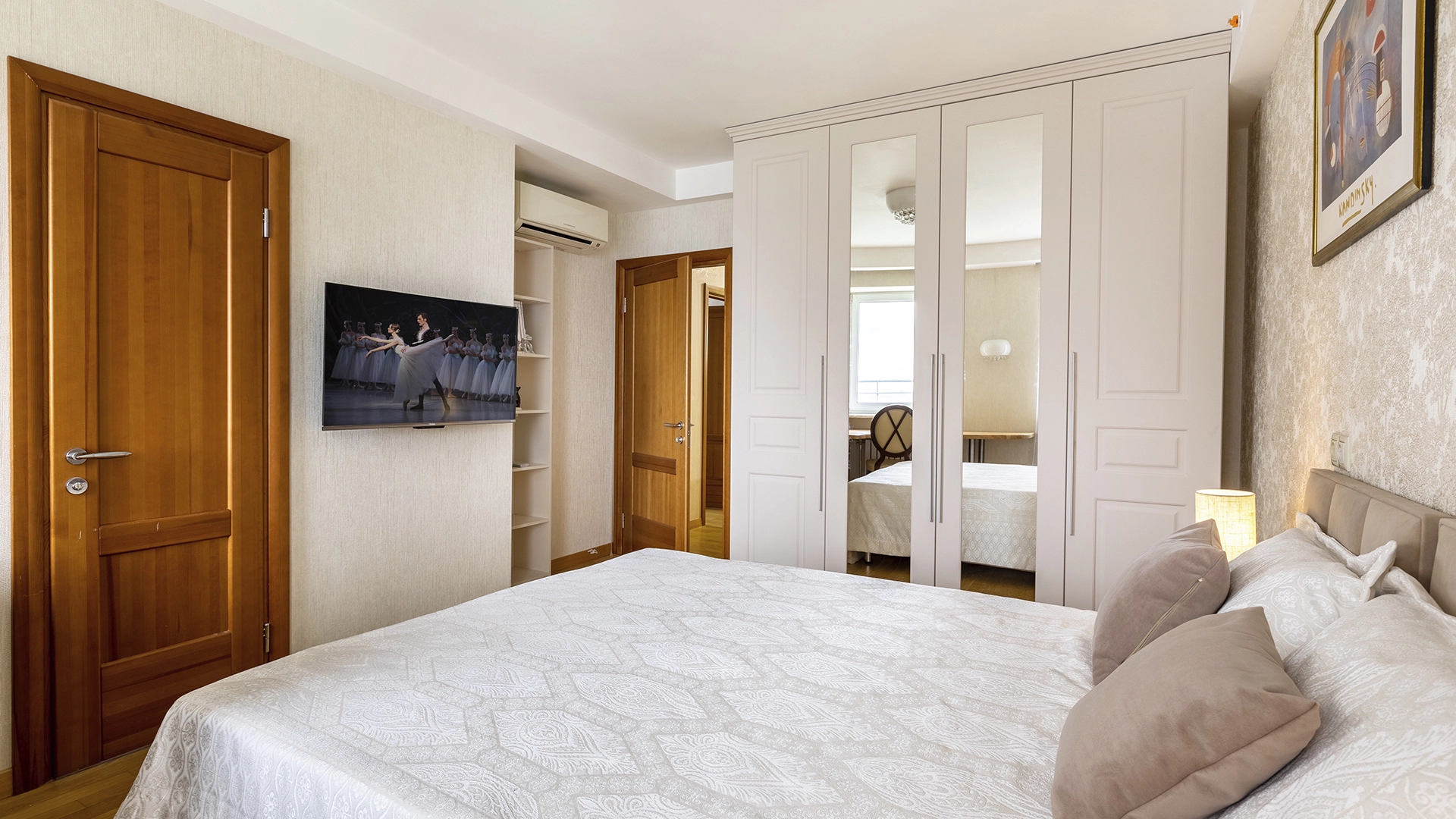 A 3-bedroom apartment with a total area of 500 m² in the premium-class residential complex "Vorobyovy Gory". The interior is decorated in laconic light beige colors, natural materials are used in the finishing. The spacious living room with a bay window has a grand piano, a fireplace and a large sofa. One of the bedrooms is equipped as a study. The kitchen is equipped with all necessary appliances. The second bedroom has an individual bathroom and a dressing room.