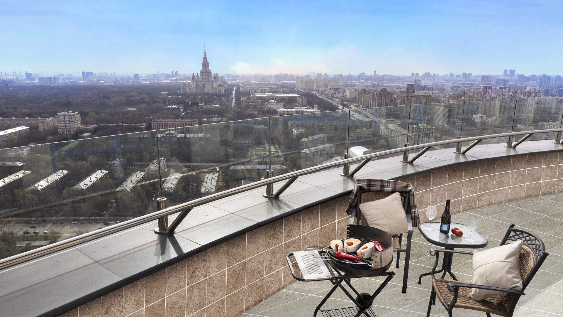 View three-level penthouse with terrace on Sparrow Hills, 500 m²