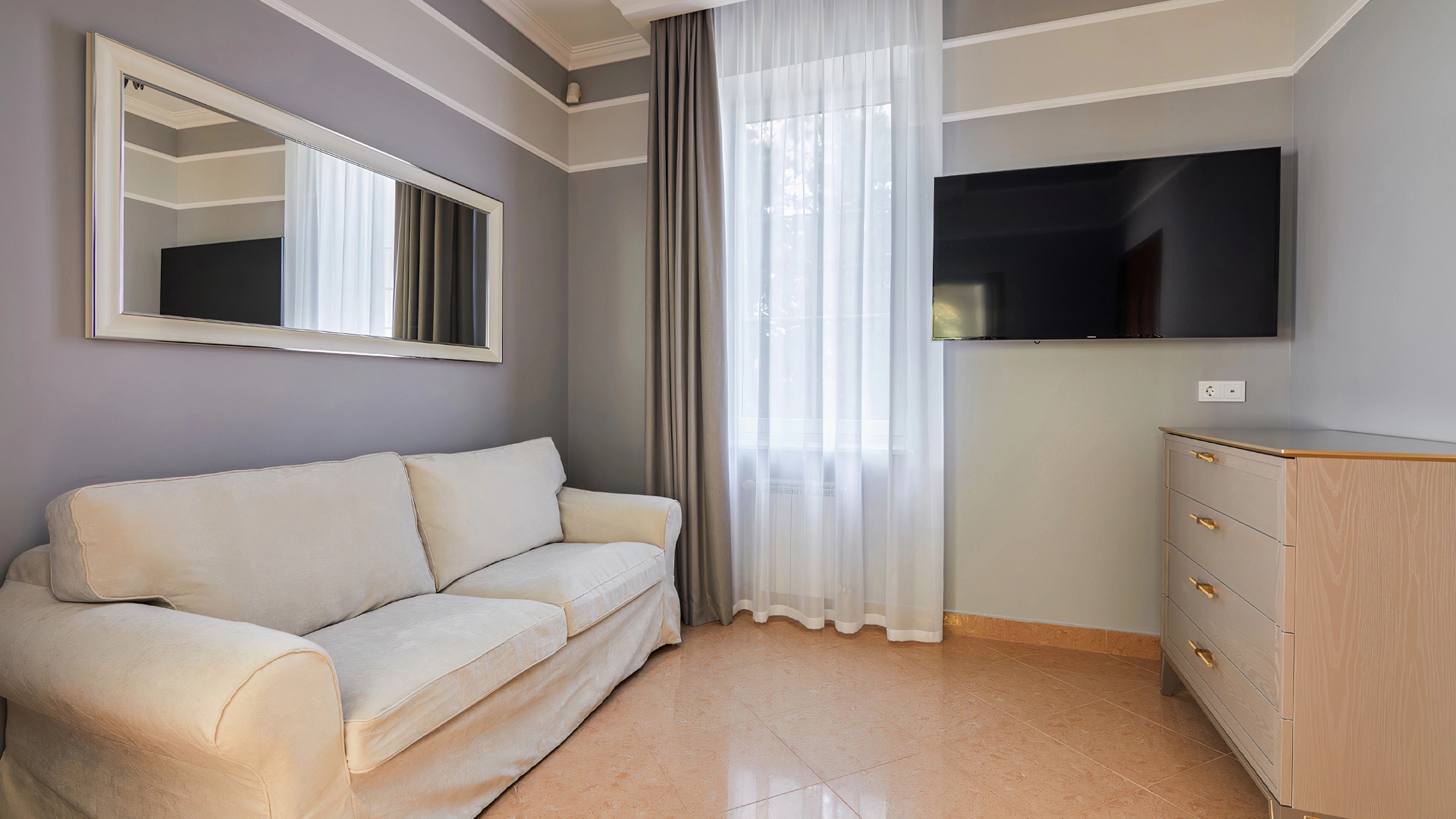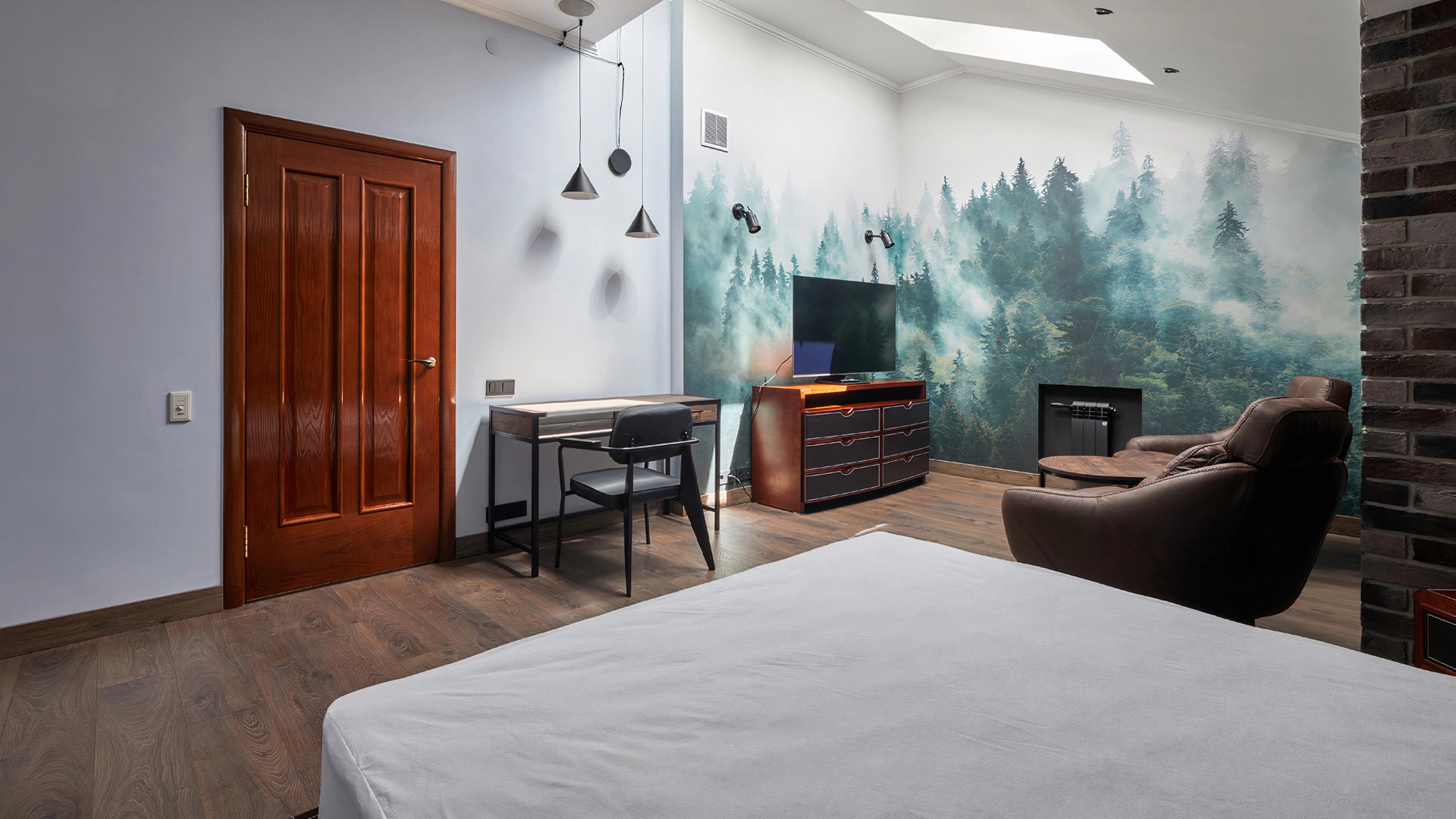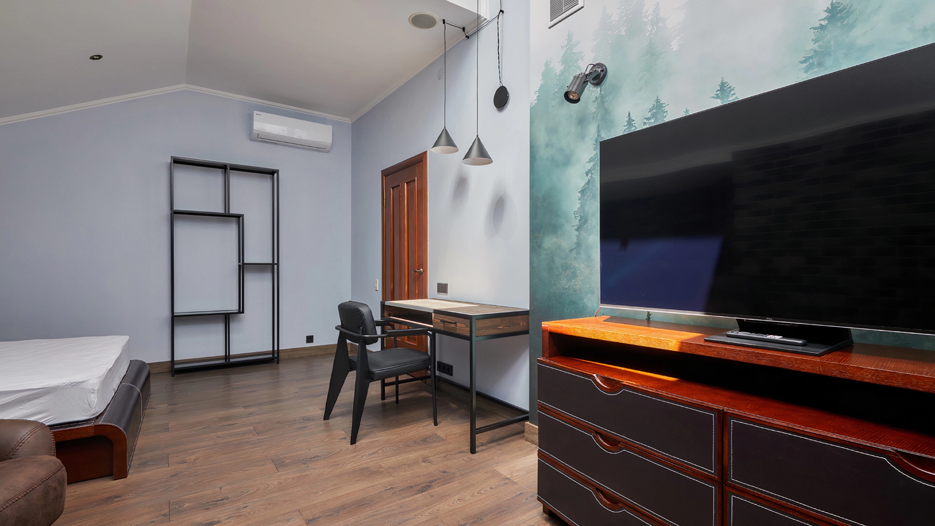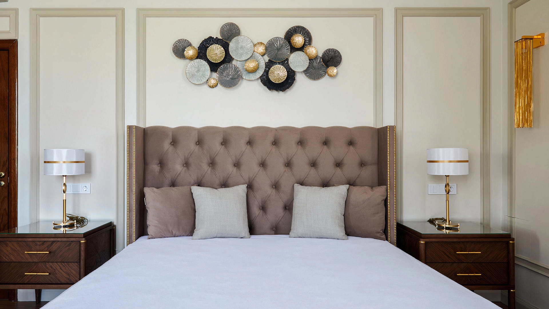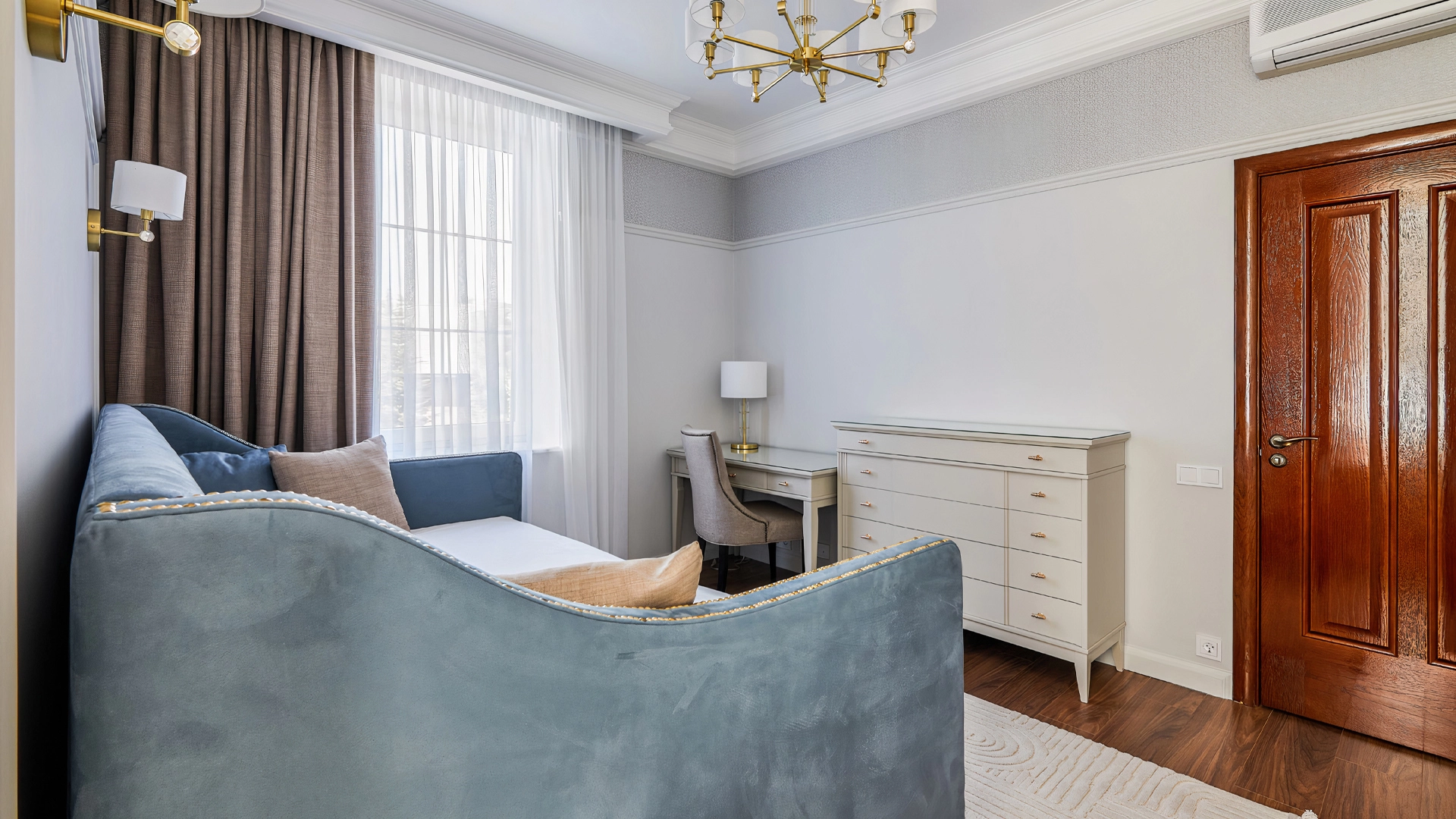 The country residence with an area of 418 m² is built on a field plot of 12 hectares. The facade of the building is made in neoclassical style and is faced with yellow-beige plaster, decorated with white platbands, cornices and semi-columns. The light interior is finished in warm colors combined with the texture of wood and stone. The layout of the house includes 4 bedrooms, a cozy living room with a fireplace, kitchen-dining room, study, gym, cinema and SPA-zone with a swimming pool and sauna. In the contour of the cottage there is a garage for 1 car. The plot is landscaped, paved areas and a barbecue area.