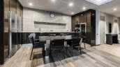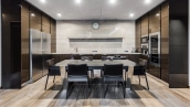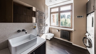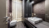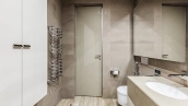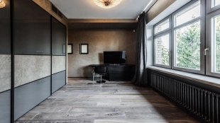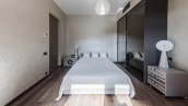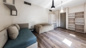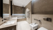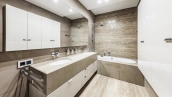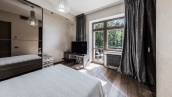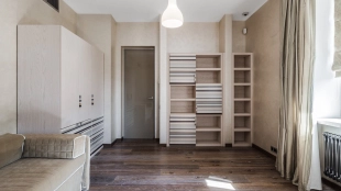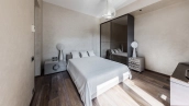 This spacious 163 m² apartment is located on the third floor of a five-storey building. Warm beige shades prevail in the finishing of the modern interior, creating an atmosphere of home comfort. Marble, stone and decorative plaster with silk effect are used in the bathrooms. The apartment is equipped with furniture, household appliances Miele, Liebherr and Kuppersbusch and sanitary ware Villeroy&Boch, DornBracht and Margoroli. The layout of the apartment includes 2 bedrooms, a large kitchen-dining-living room with a wood-burning Boley fireplace decorated with Wood stone, a fitness room and a balcony. There is 1 space for a car in the underground parking. For residents of the house is available swimming pool 25 meters long.